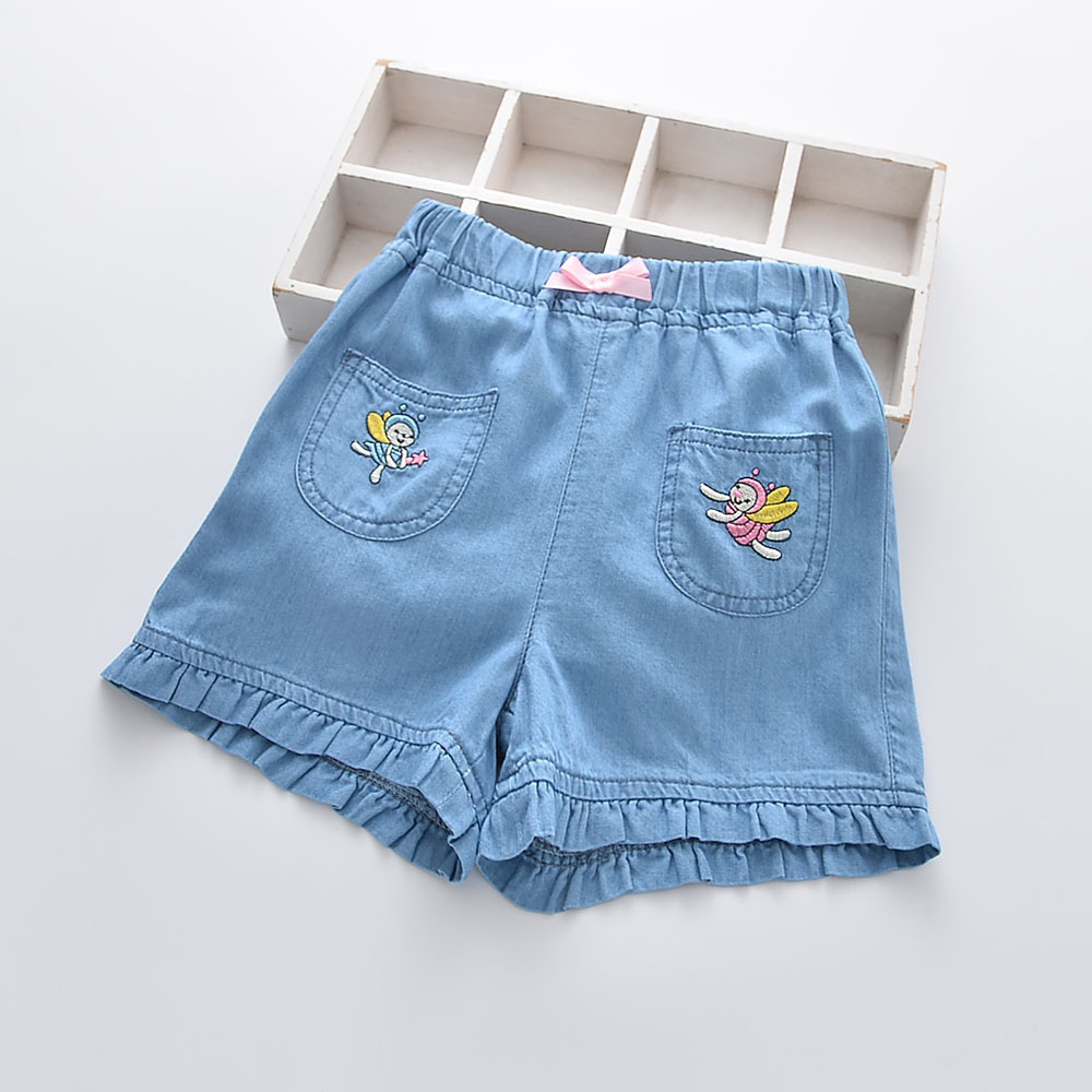 2022夏季新款 蜜蜂刺绣 女童纯棉水洗蝴蝶结牛仔短裤
