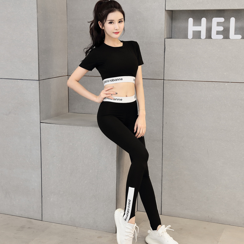 여름 새로운 속건 의류 하이 웨이스트 꽉 요가 의류 반팔 세트 여성의 달리기 피트니스 얇은 발 스테핑 스포츠 바지스토어 가기