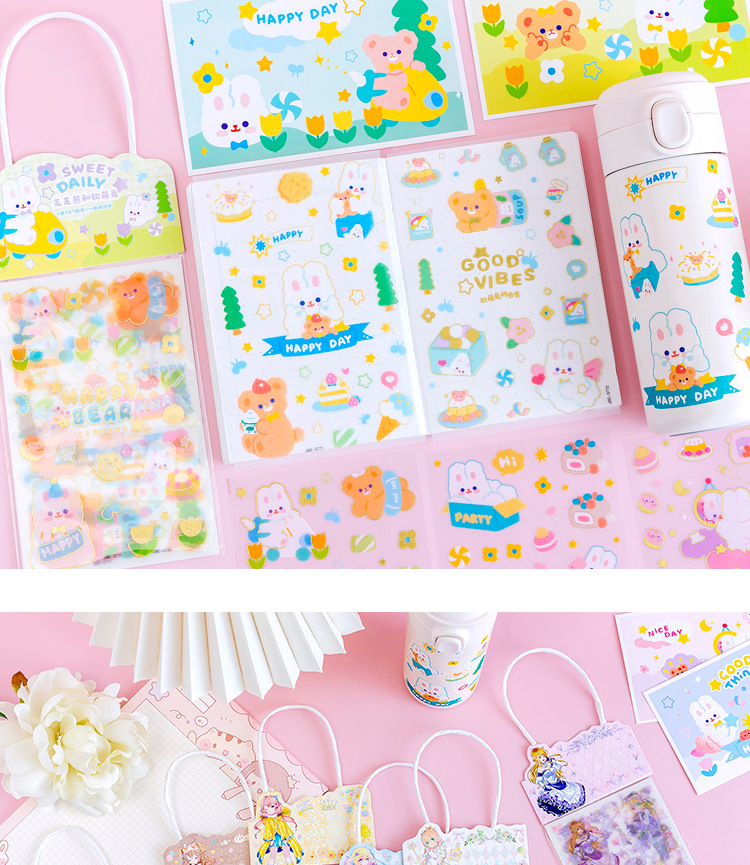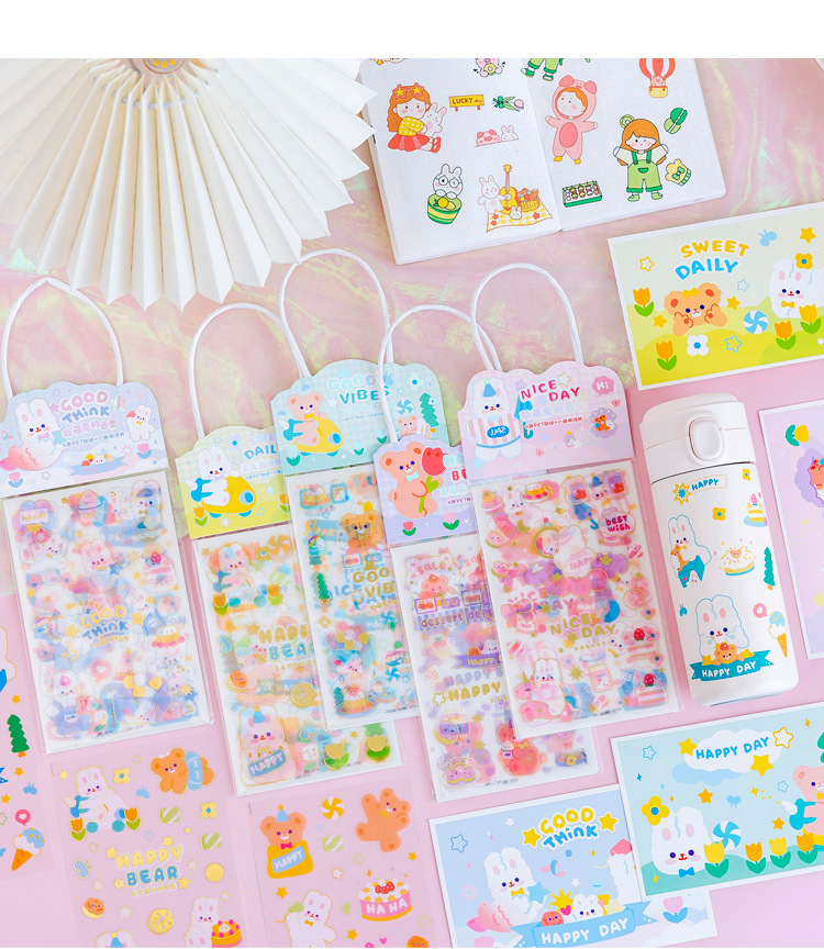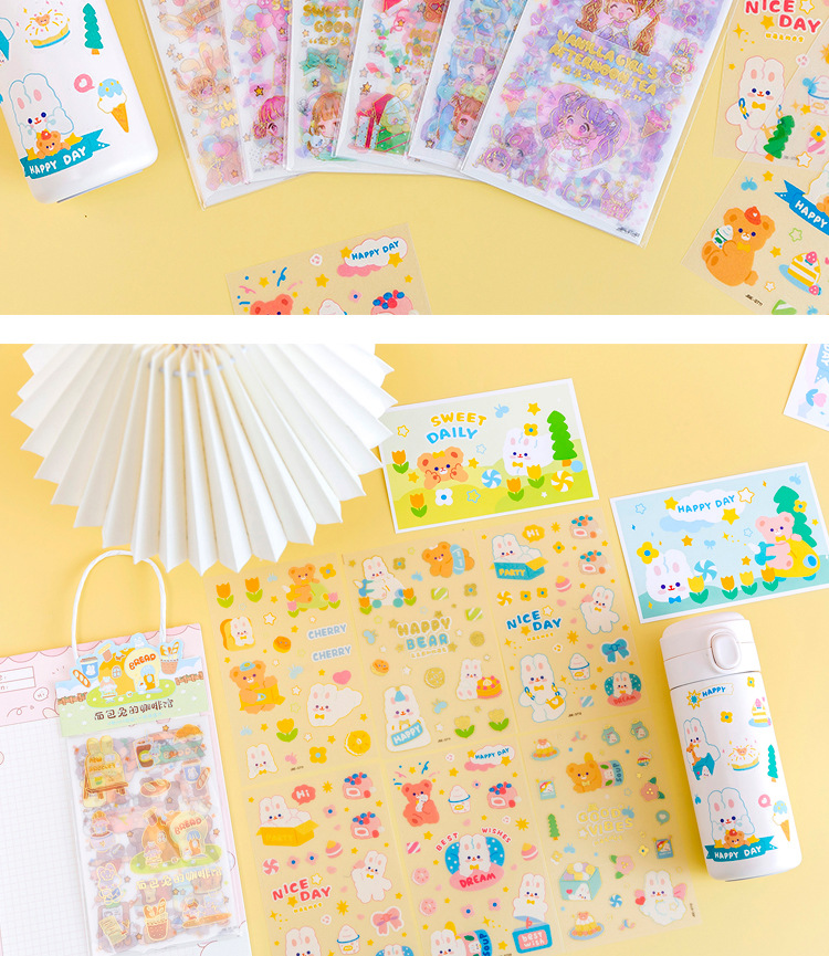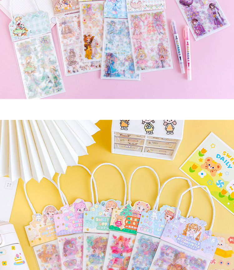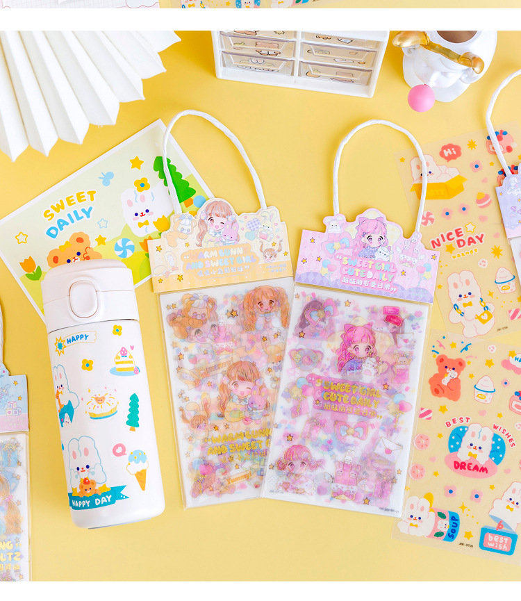 만화 스티커 도매 어린이 손 계정 스티커 휴대용 가방 도금 젖빛 소녀 엽서 컵 스티커 상품스토어 가기