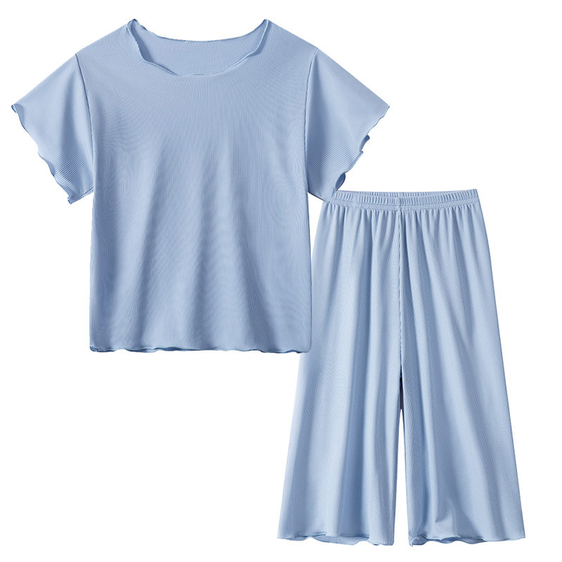 아이의 가정 옷 세트 부모-자식 여름 얇은 반팔 아이스 실크 면 카프리 바지 세트 어머니-딸 같은 잠옷