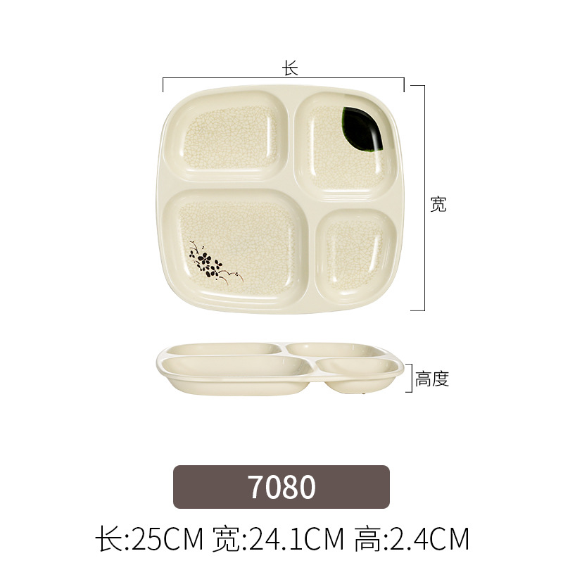 멜라민 패스트 푸드 접시 4 개 6 칸 접시 도자기 모조 플라스틱 학교 매점 공장 식기 세트 멀티 칸 접시