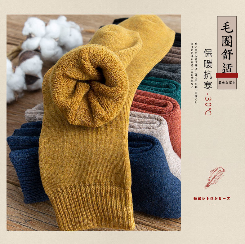 새로운 겨울 두꺼운 플러스 벨벳 양말 여성용 커플 단색 따뜻한 테리 바닥 양말 남성용 중간 튜브 문 타월