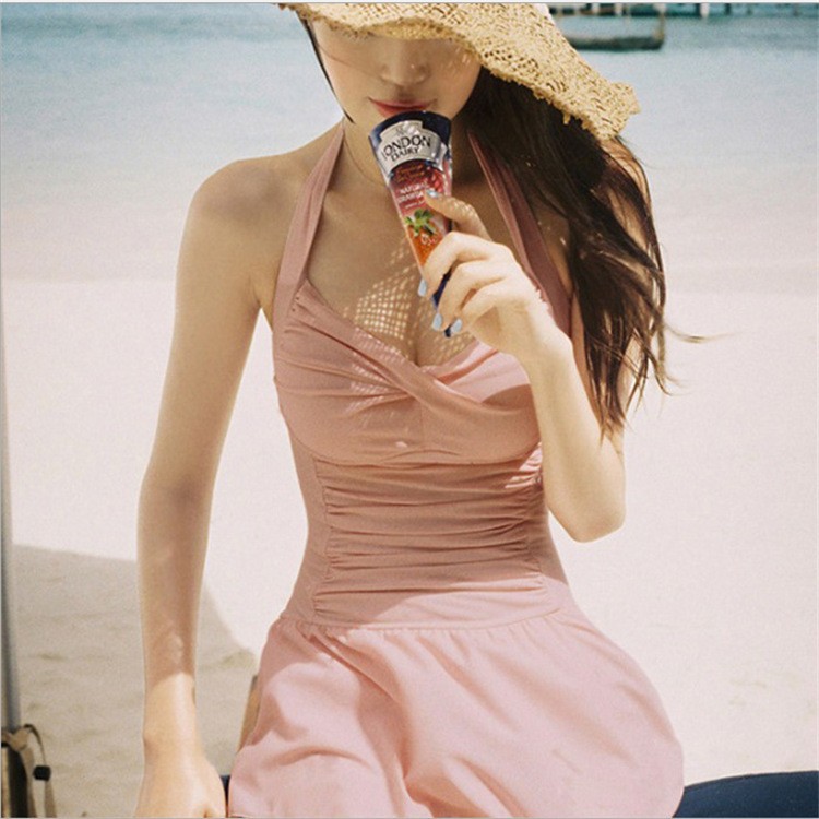 도매 한국 in 수영복 작은 신선한 고무 분말 원피스 스커트 슬림 보수적 인 온천 수영복 여성의 대외 무역