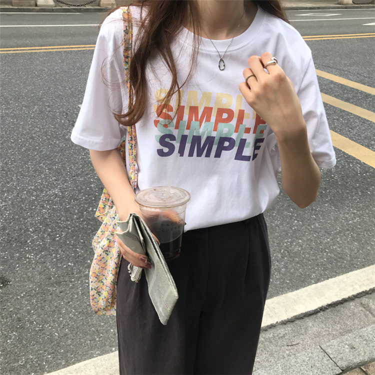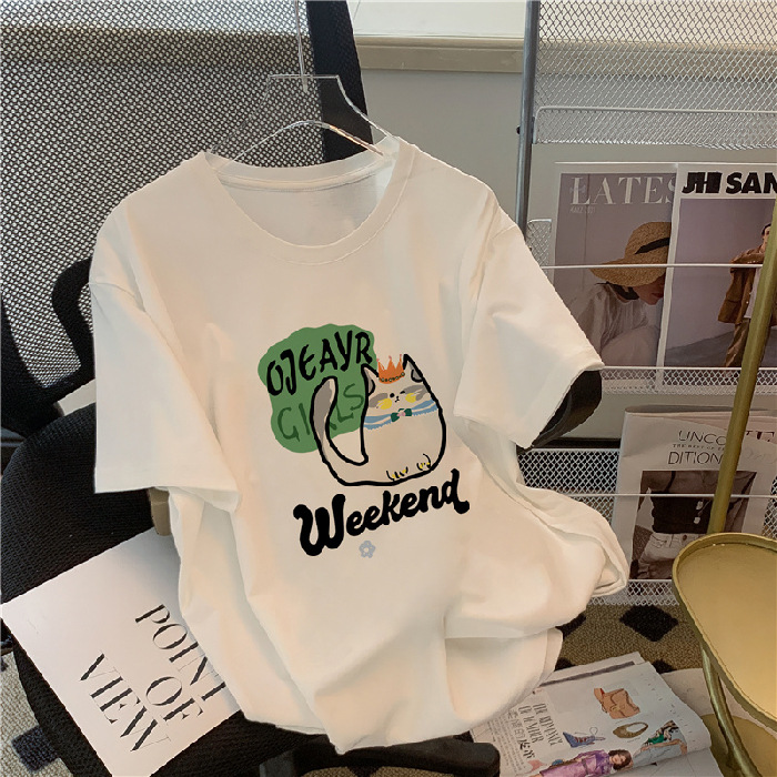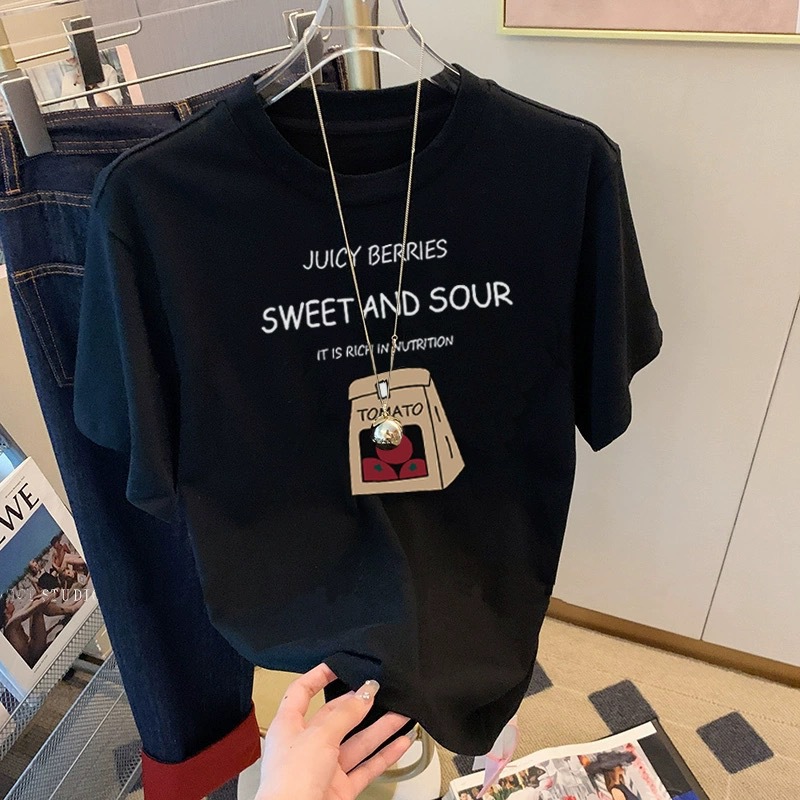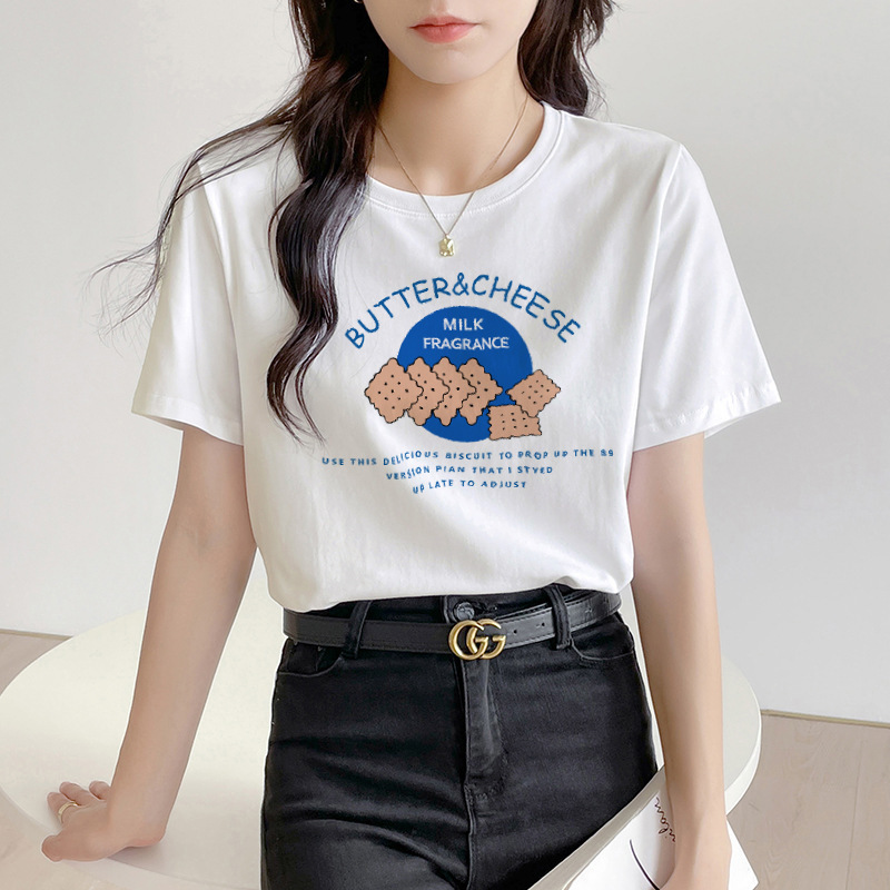 여름 새 반소매 티셔츠 여성용 코튼 루즈 한국식 Ins 여자 올 매치 만화 인쇄 내부 반소매 탑스토어 가기