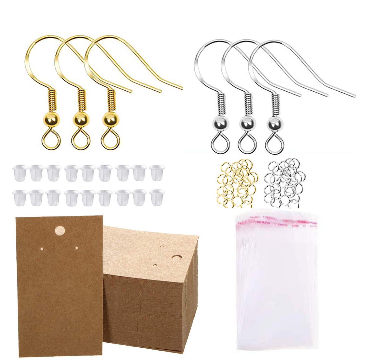 구리 이어 후크 귀마개 단일 링 opp 포장 보관 가방 매달려 황금 실버 크래프트 종이 귀걸이 판지