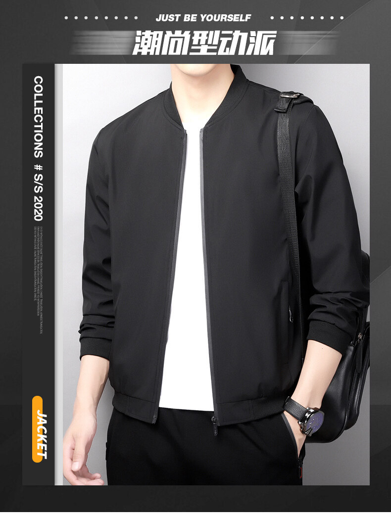 남자의 재킷 봄과 가을 한국 유행 캐주얼 재킷 봄과 가을 지퍼 포켓 재킷 남자의 야구 세트 남자의 단색