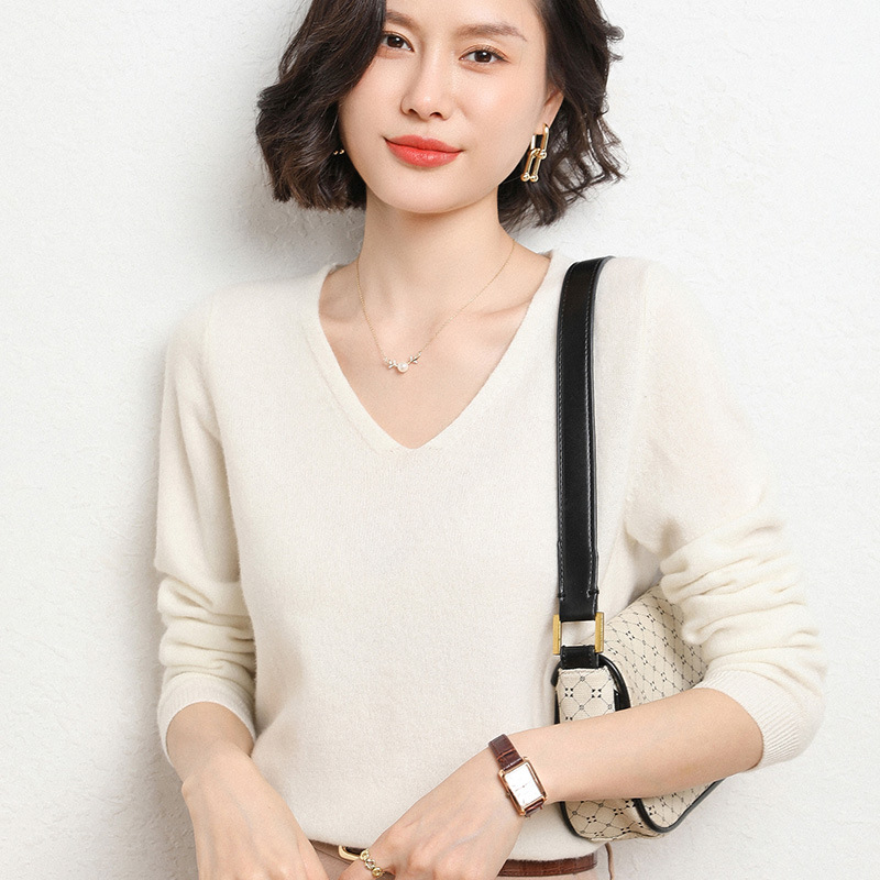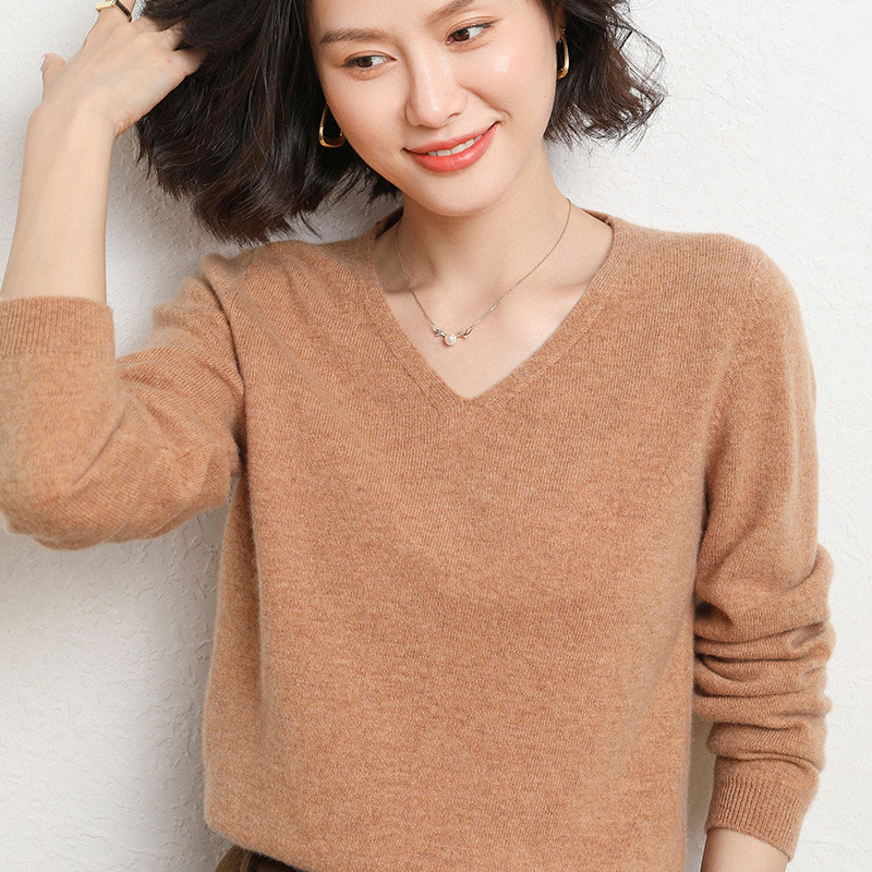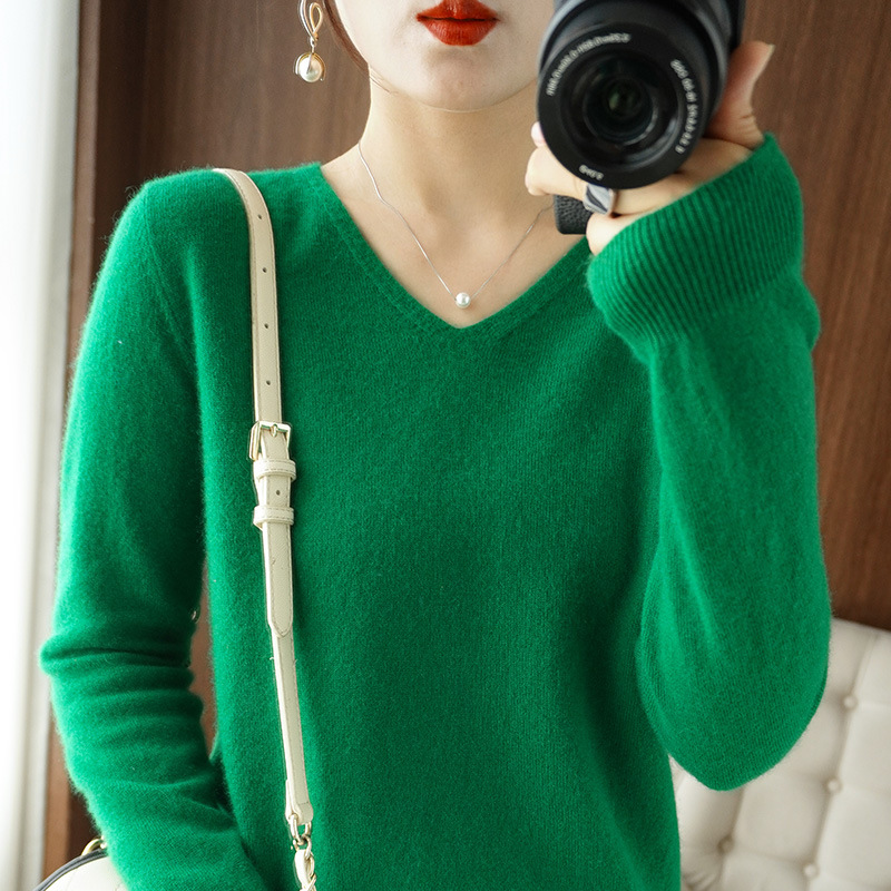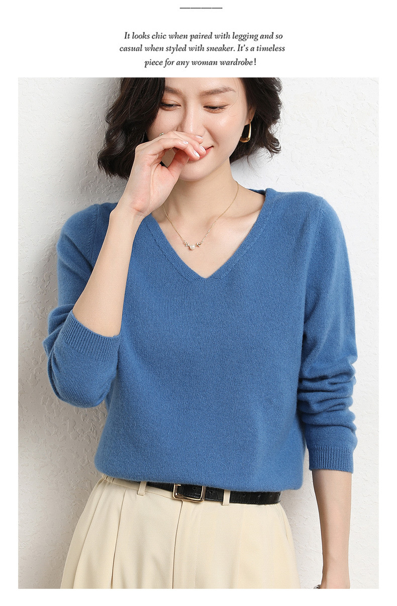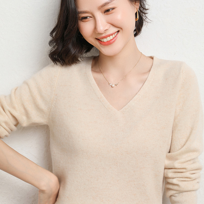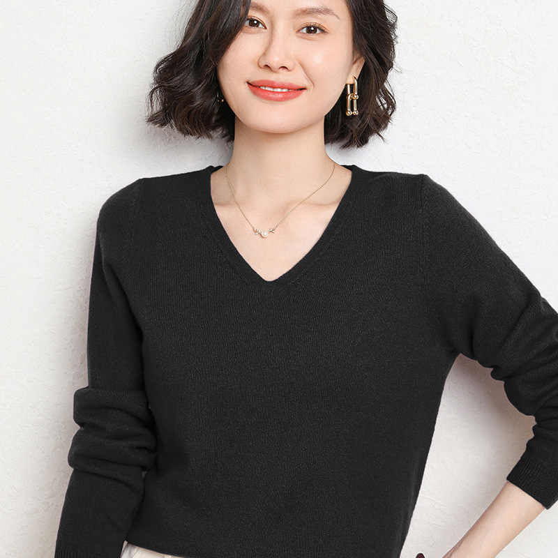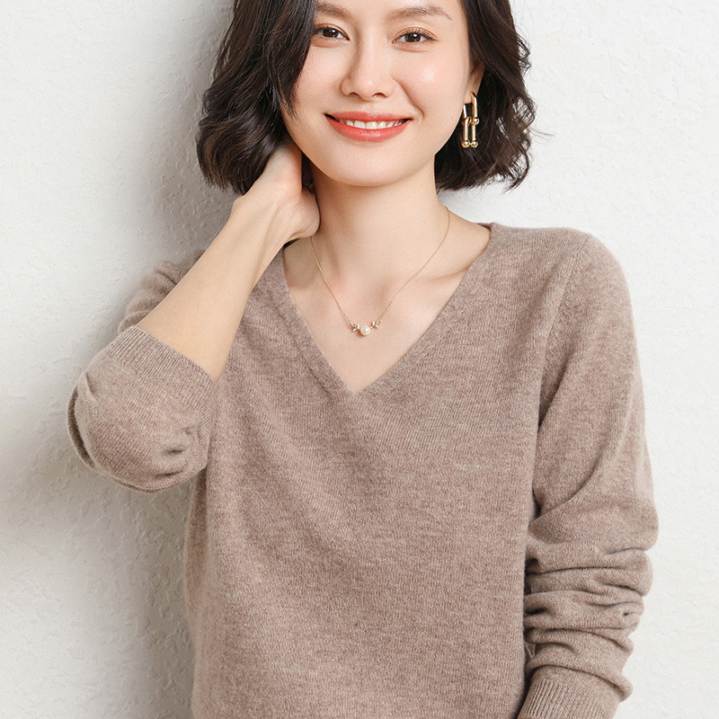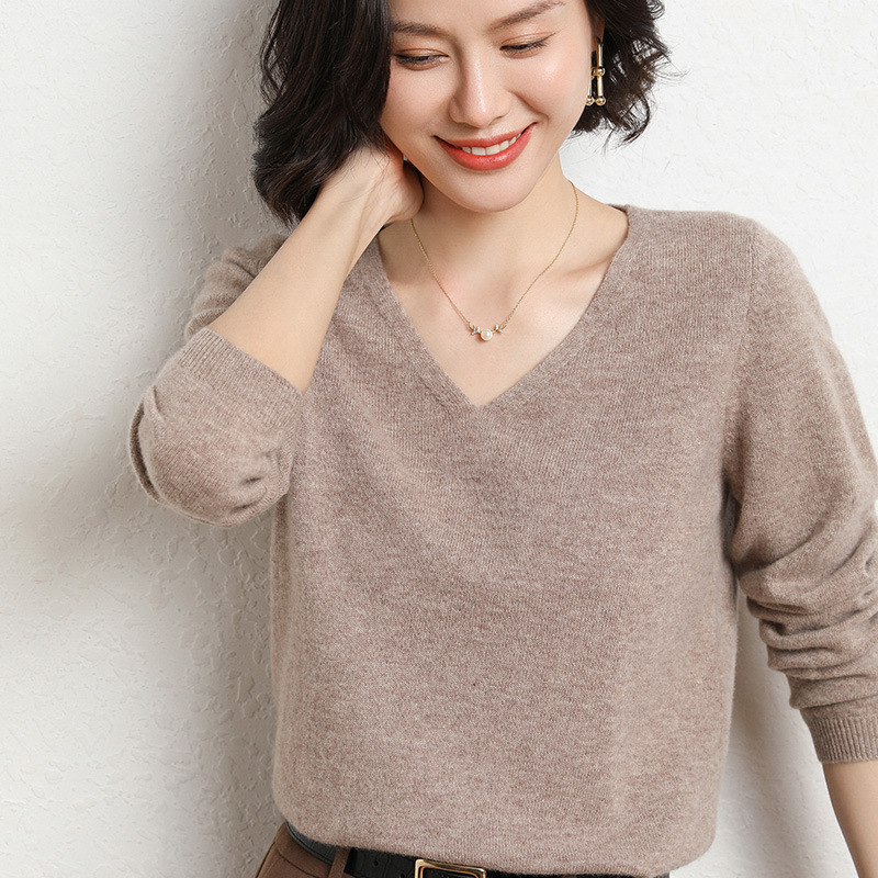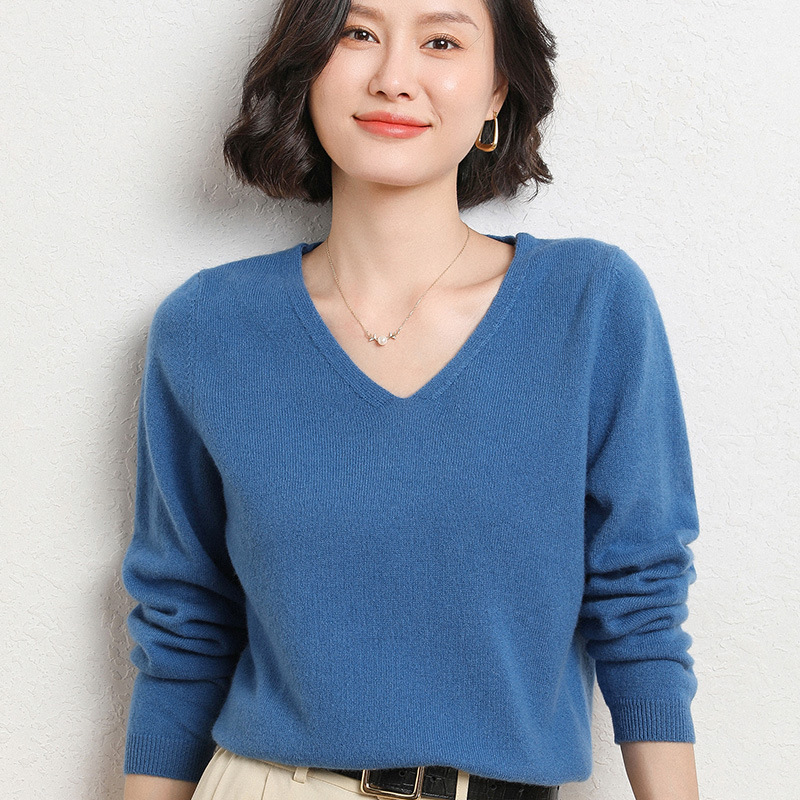 브이넥 루즈 니트 여성용 2024 봄 가을 신상 여성 스웨터 이너웨어 겸 외투용 단색 베이스 셔츠 탑스토어 가기