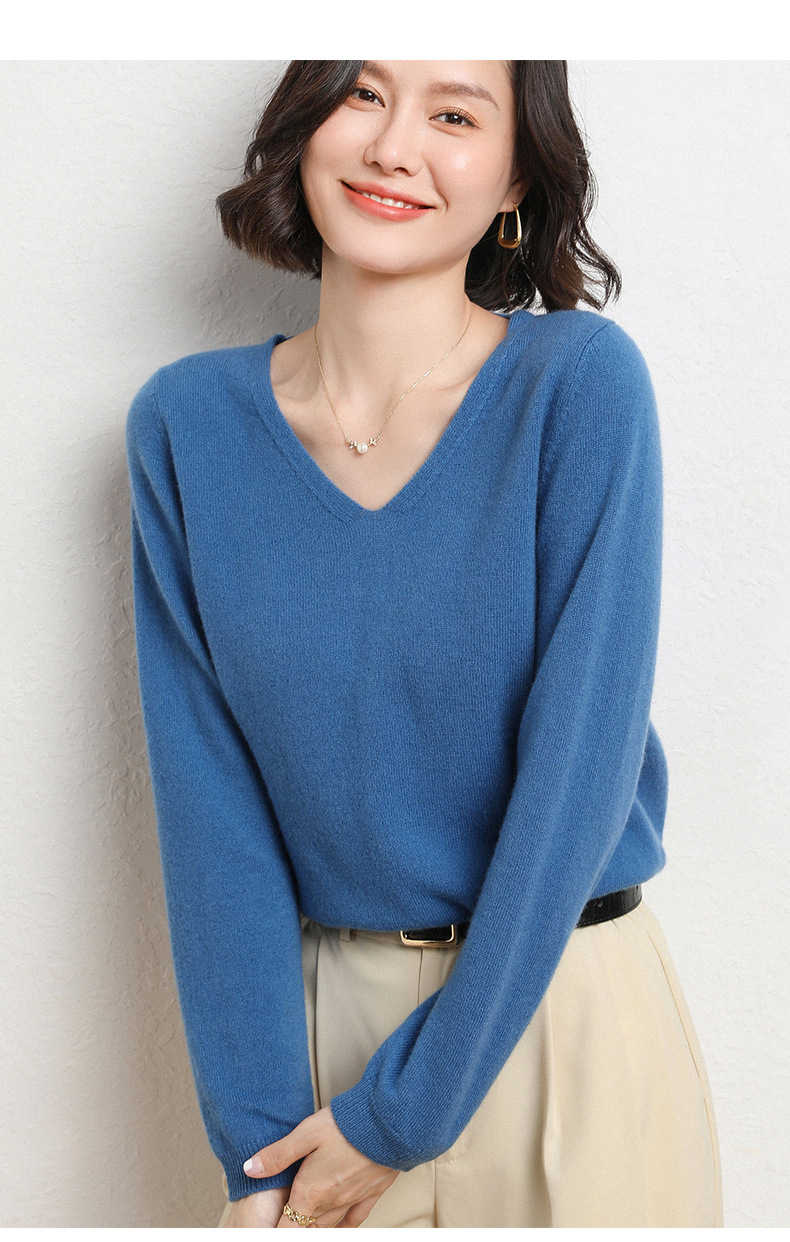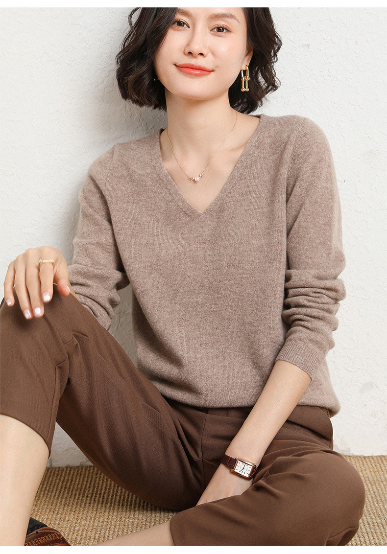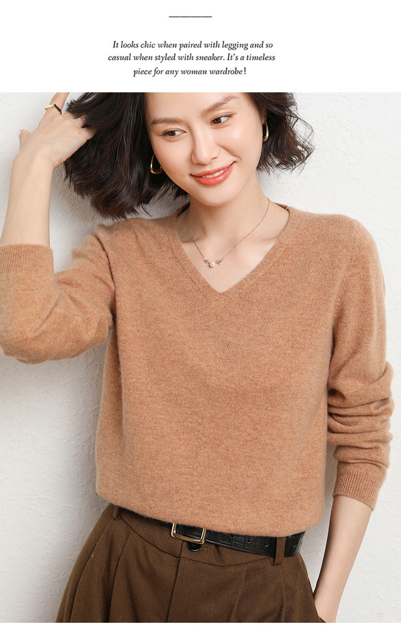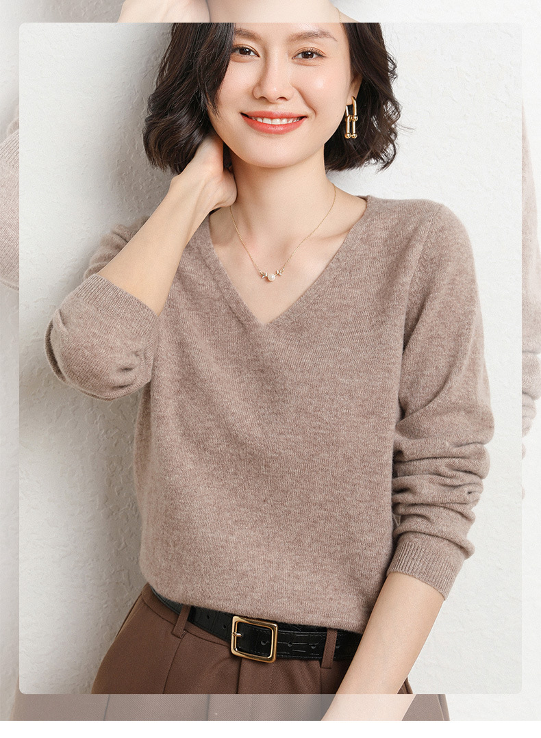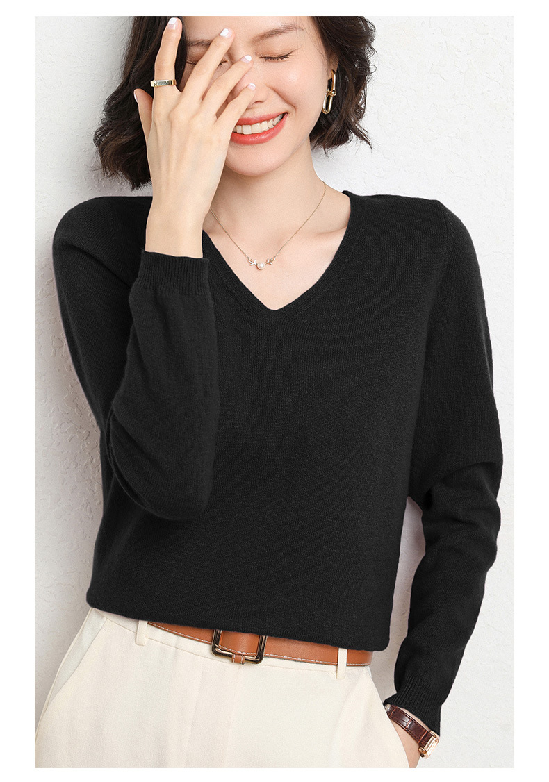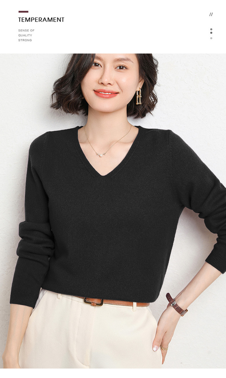 브이넥 루즈 니트 여성용 2024 봄 가을 신상 여성 스웨터 이너웨어 겸 외투용 단색 베이스 셔츠 탑스토어 가기
