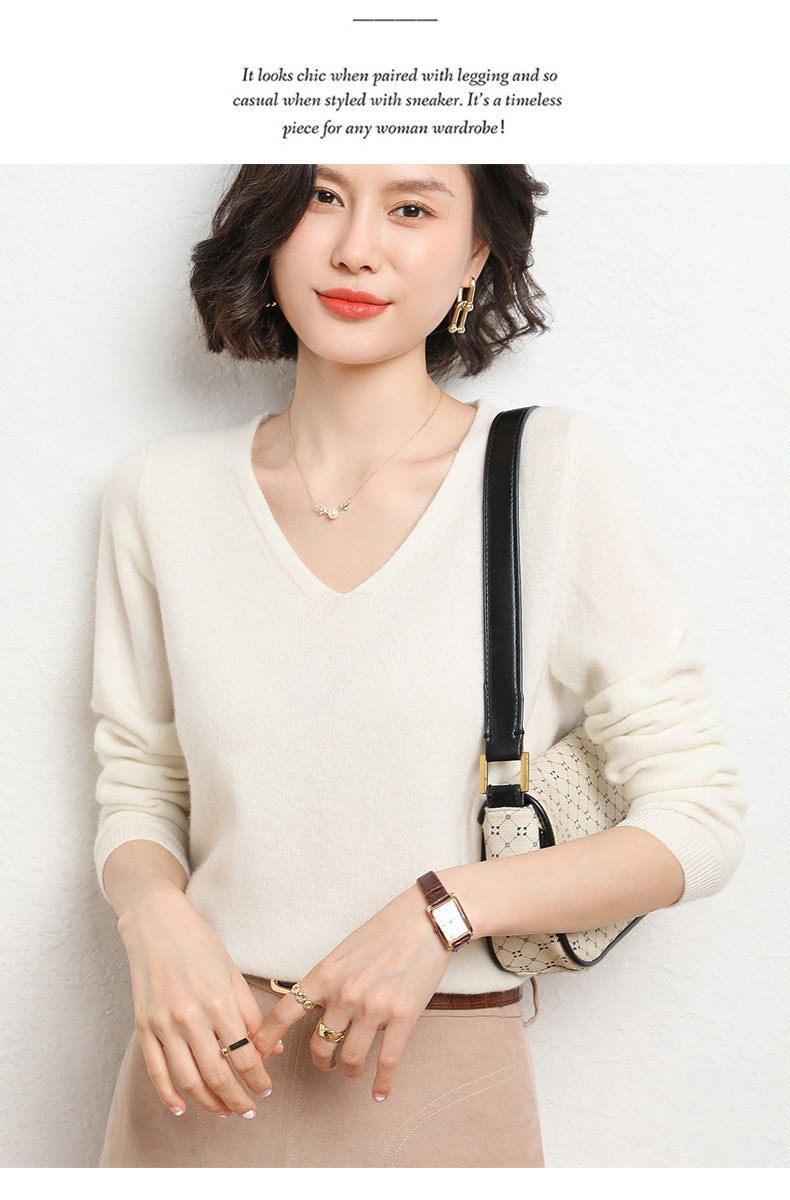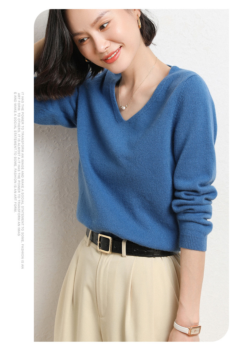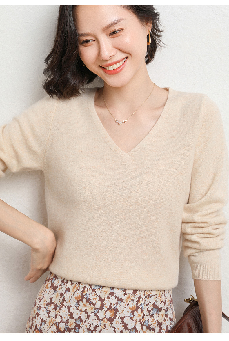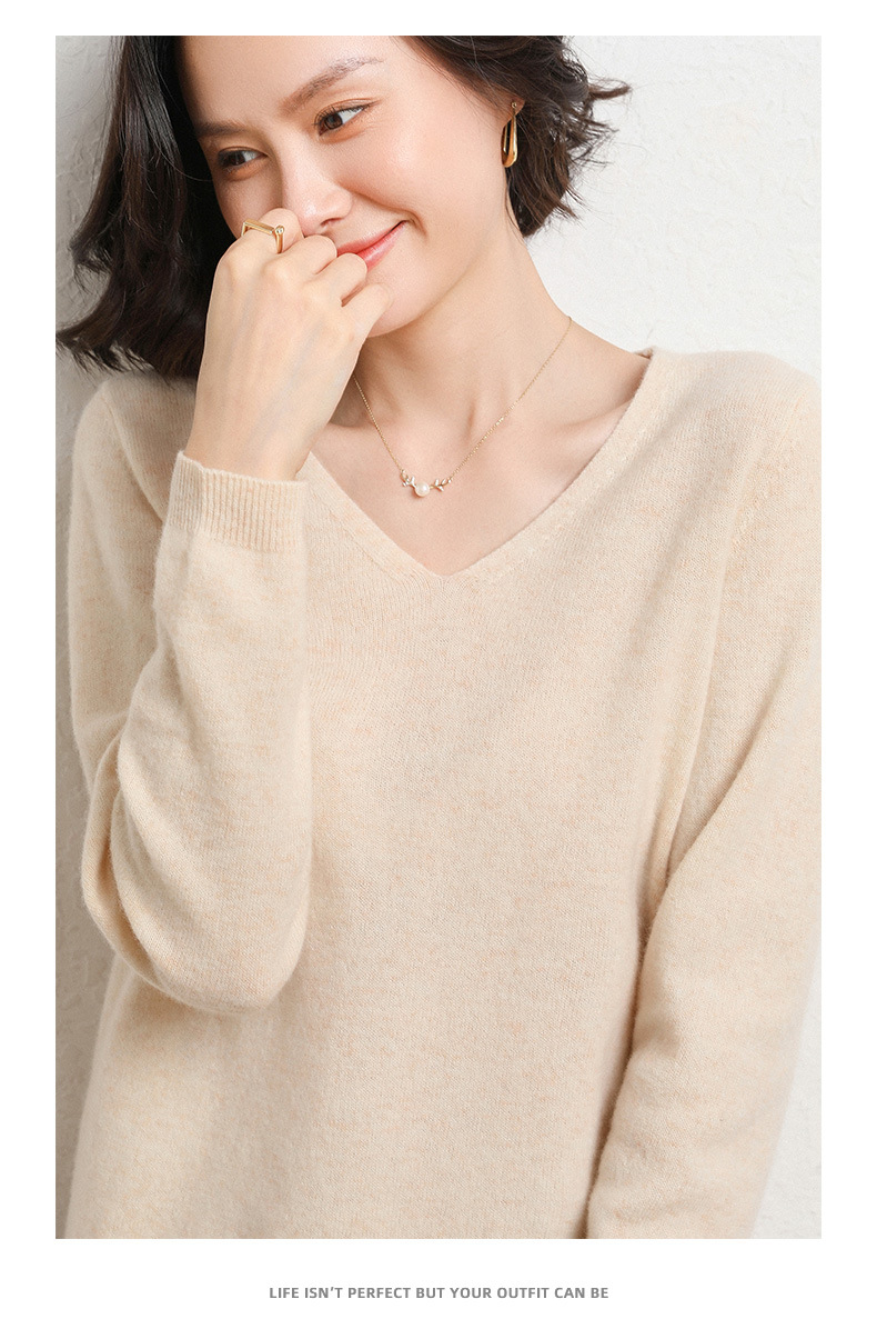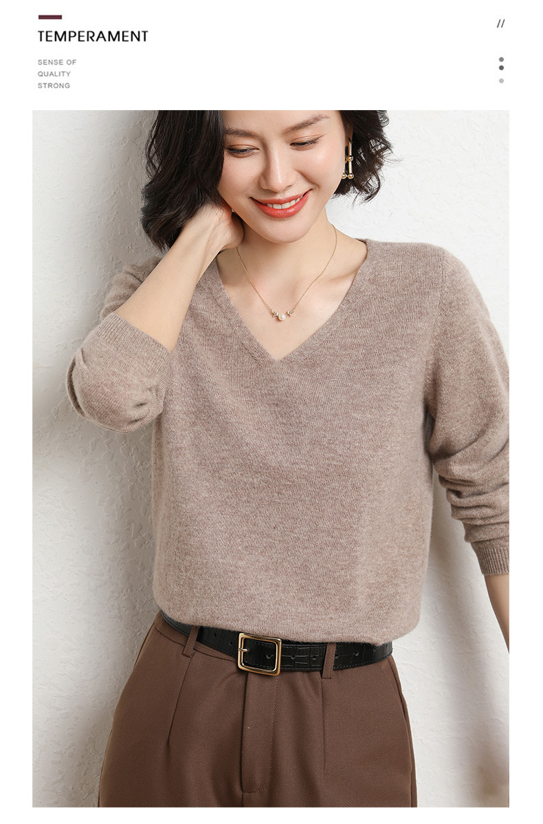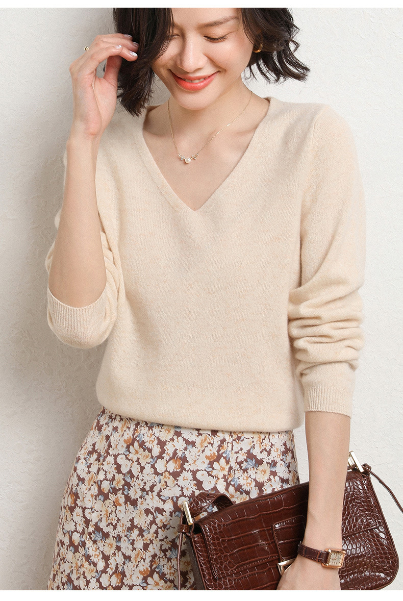 브이넥 루즈 니트 여성용 2024 봄 가을 신상 여성 스웨터 이너웨어 겸 외투용 단색 베이스 셔츠 탑스토어 가기