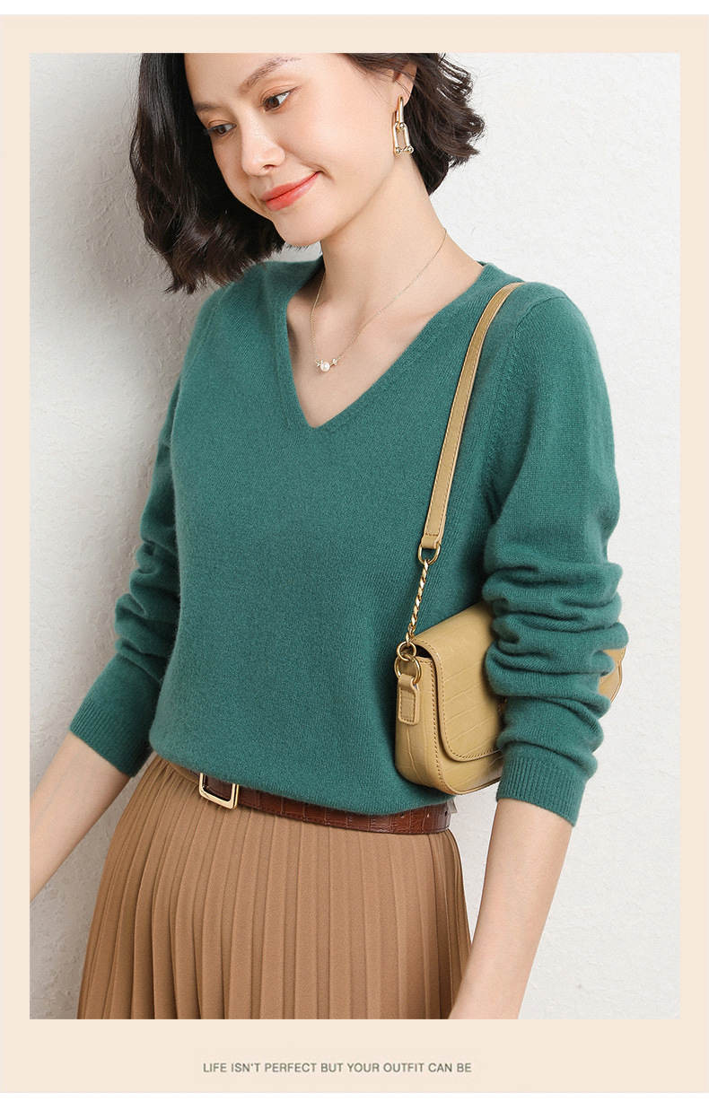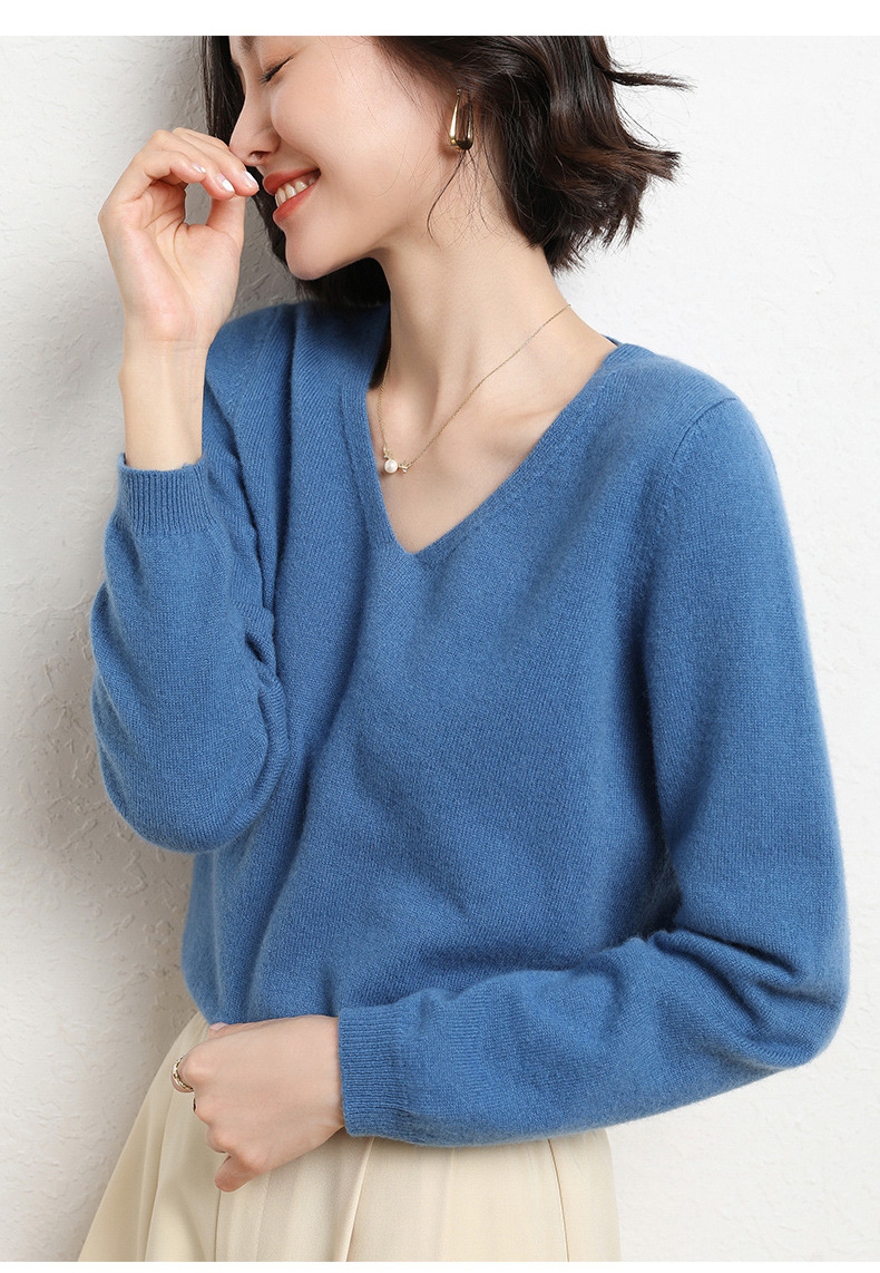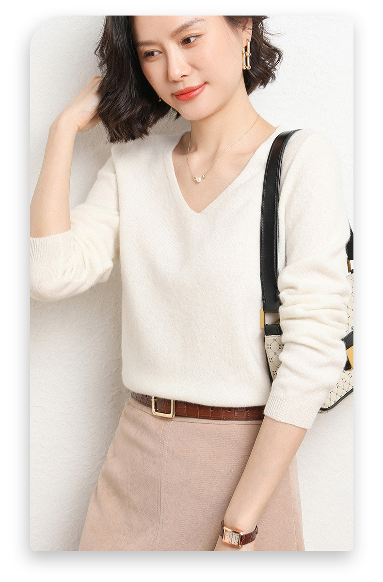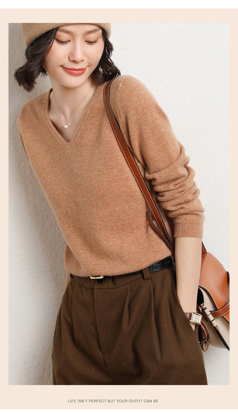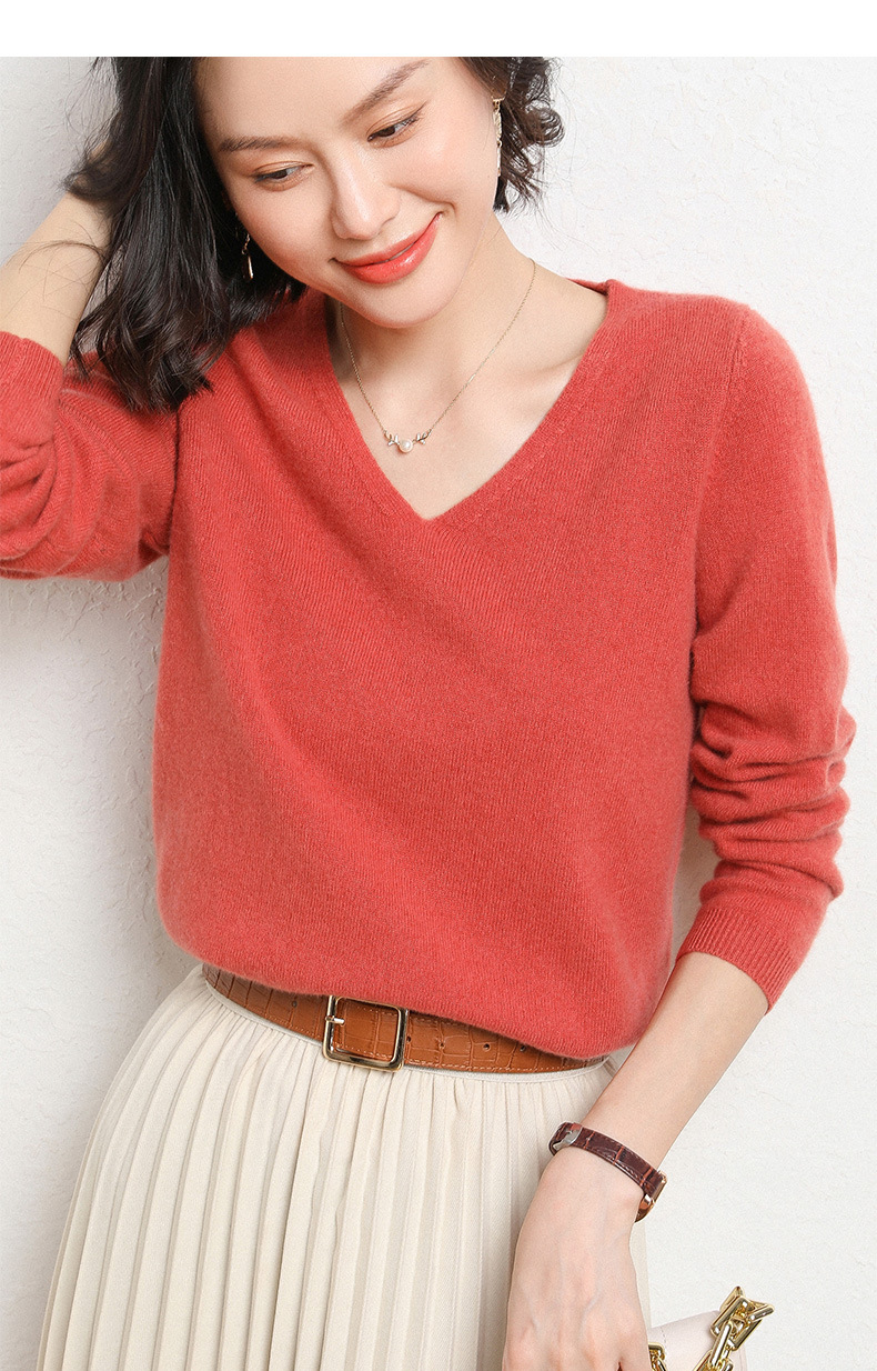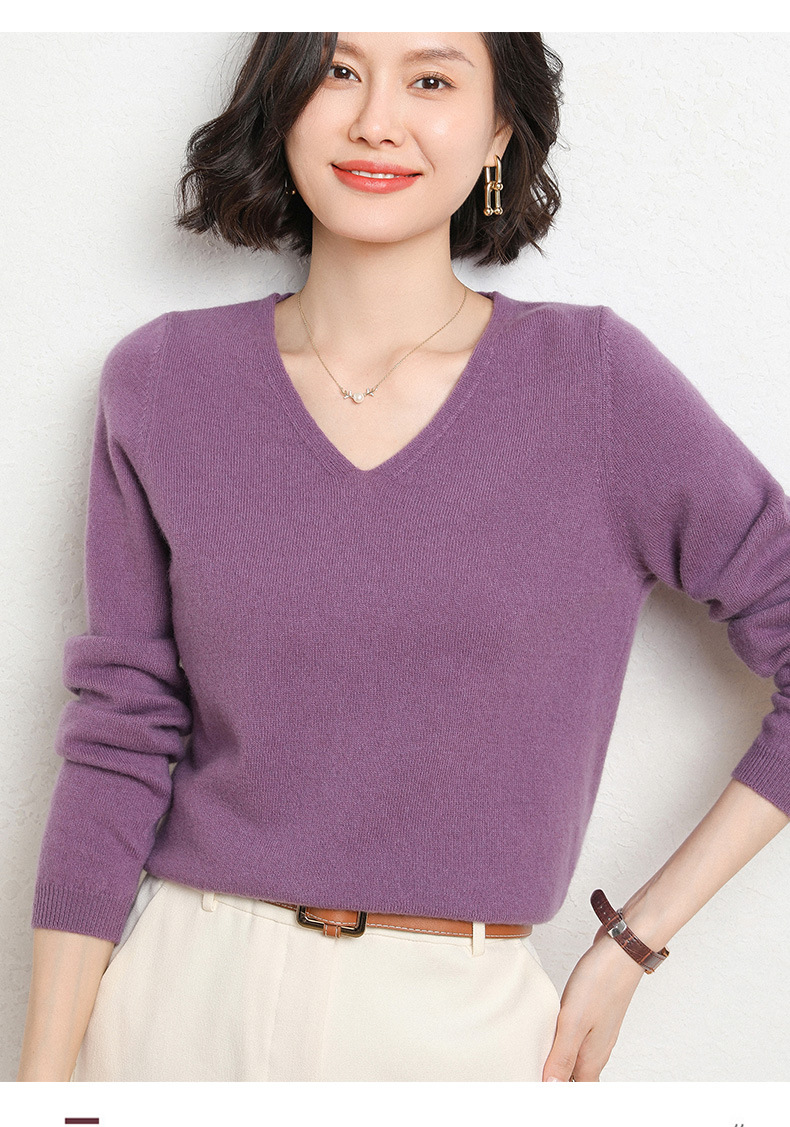 브이넥 루즈 니트 여성용 2024 봄 가을 신상 여성 스웨터 이너웨어 겸 외투용 단색 베이스 셔츠 탑스토어 가기
