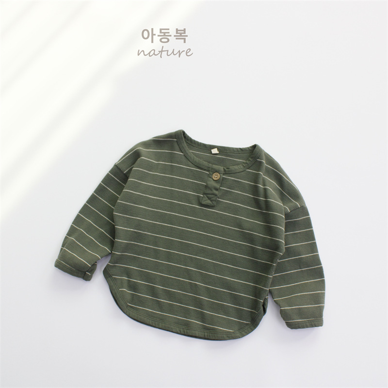 신상 가을 아동 티셔츠 여아 긴팔 한국 스타일 와플 원형넥 여아 상의 루즈핏 다용도 인스 스타일