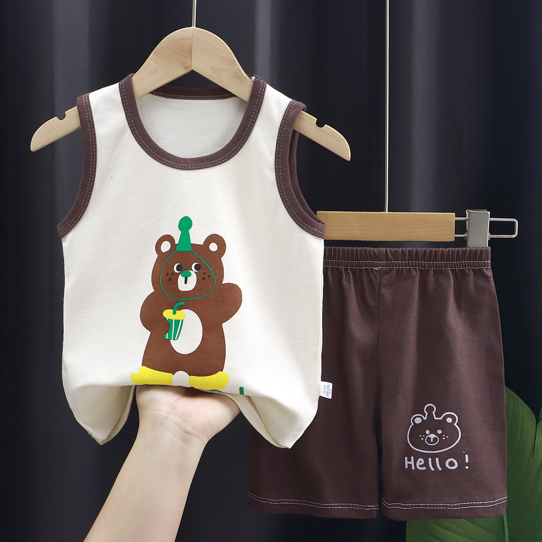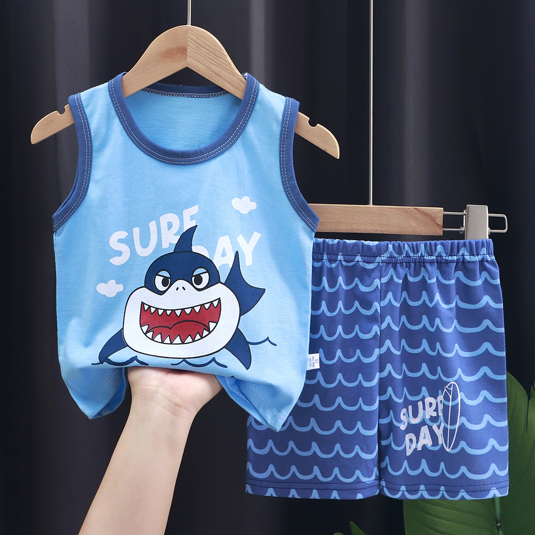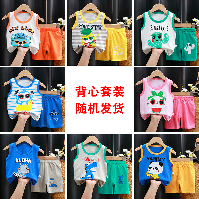 어린이 조끼 세트 여름 면 소년 새로운 여자 반바지 옷 한국 아기 세트 아동 의류 도매