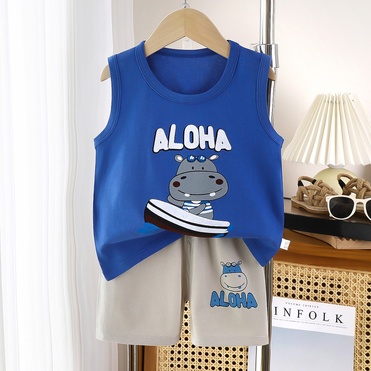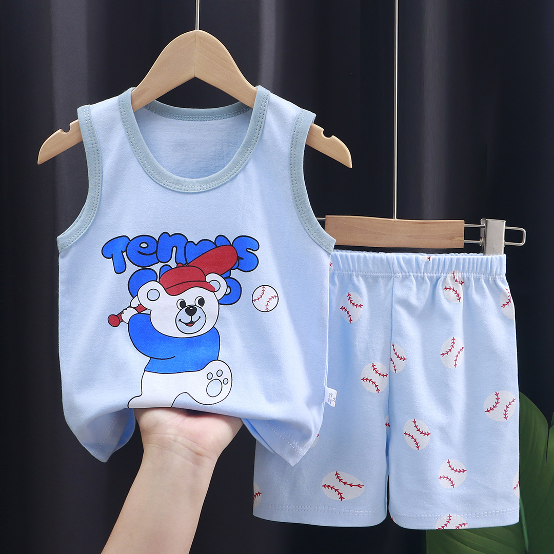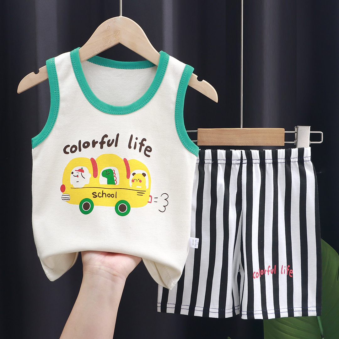 어린이 조끼 세트 여름 면 소년 새로운 여자 반바지 옷 한국 아기 세트 아동 의류 도매