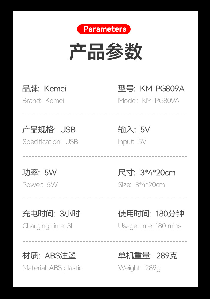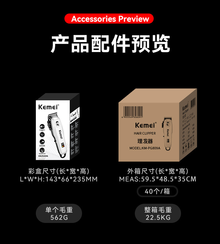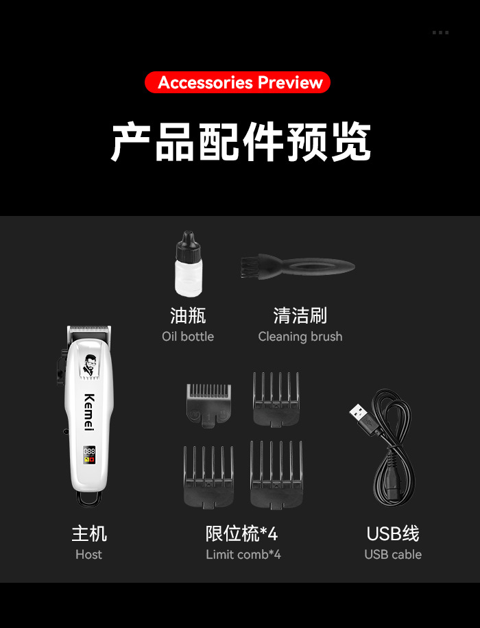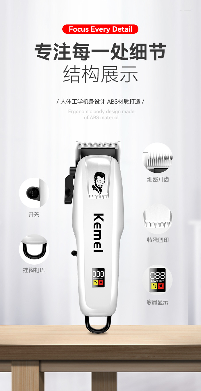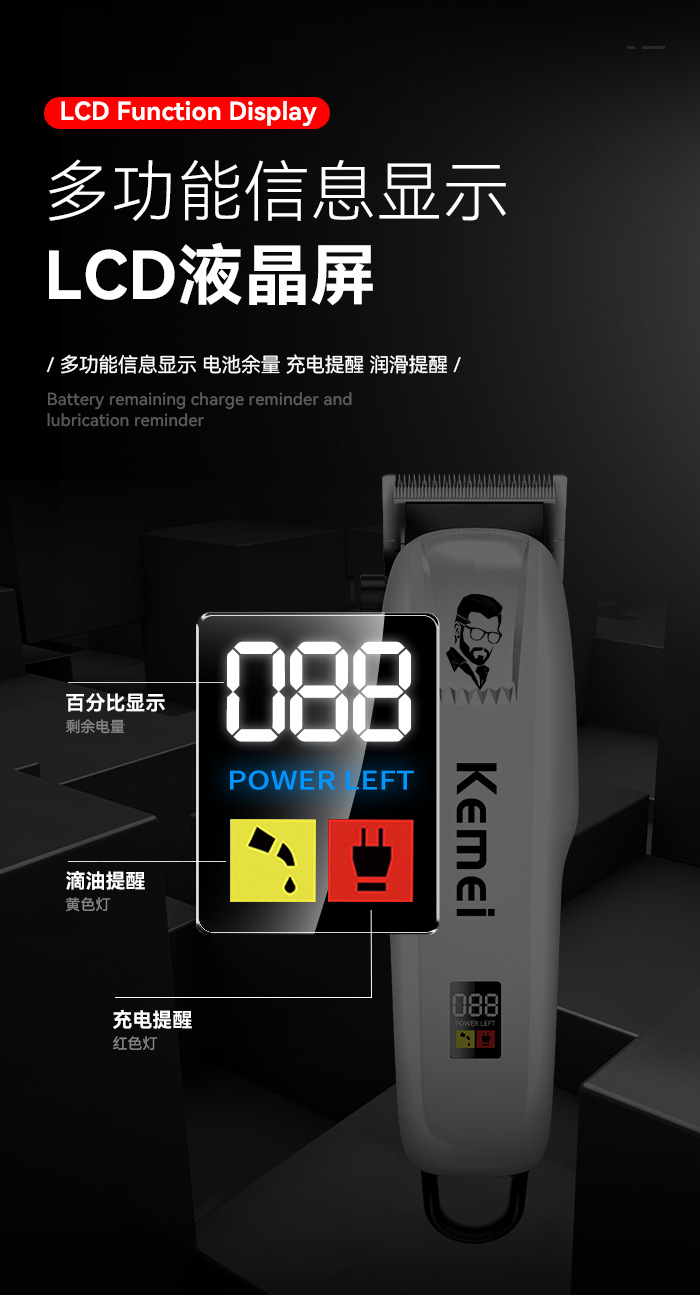 국경 간 Kemei 이발기 KM-PG809A 전기 면도 머리카락 미용실 전용 LCD 디지털 디스플레이 전기 이발기스토어 가기