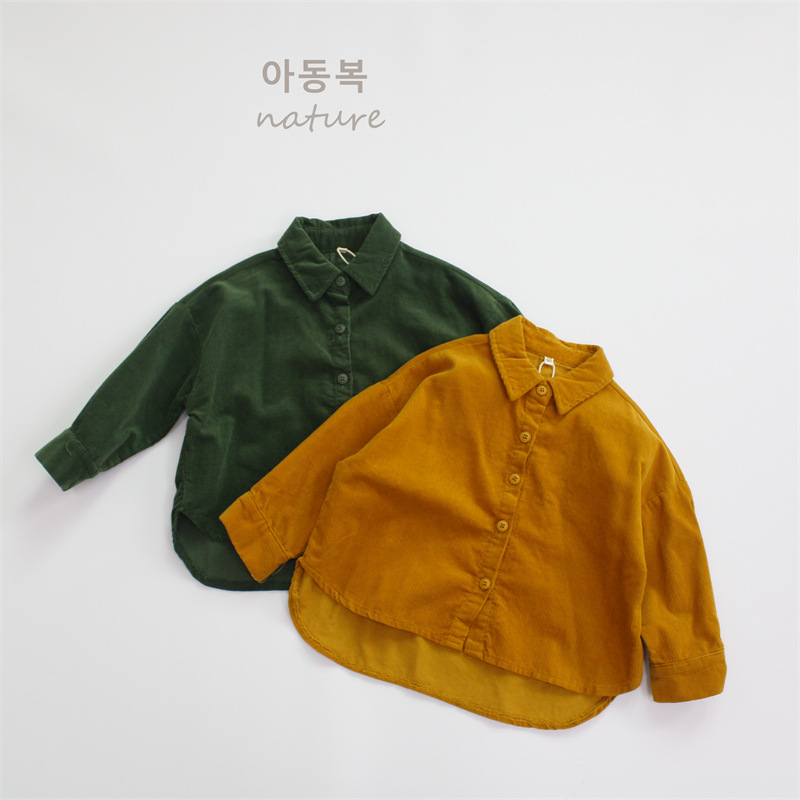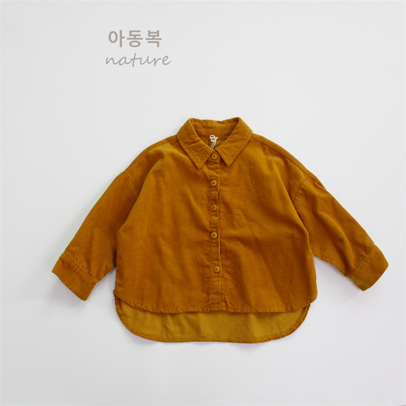 2025 가을 아동 셔츠 단색 여아 셔츠 한국 스타일 라펠 코듀로이 다용도 남아 상의 도매스토어 가기