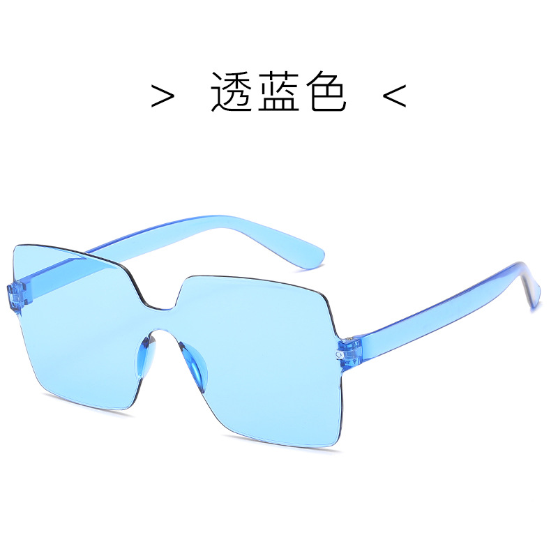 2023 새로운 크로스 보더 원피스 캔디 컬러 선글라스 결합 색상 스퀘어 프레임리스 유럽 및 미국 트렌드 선글라스
