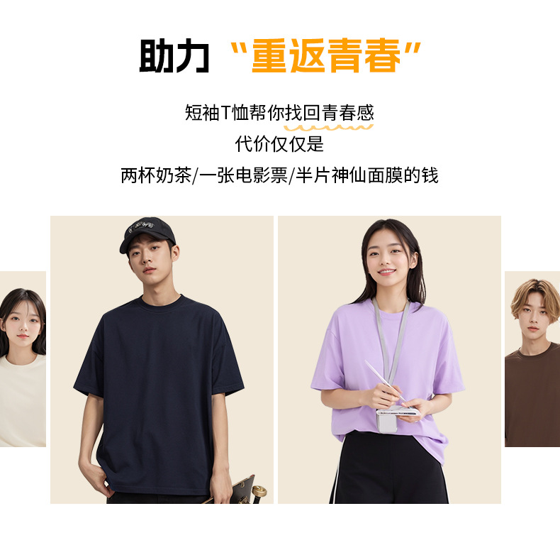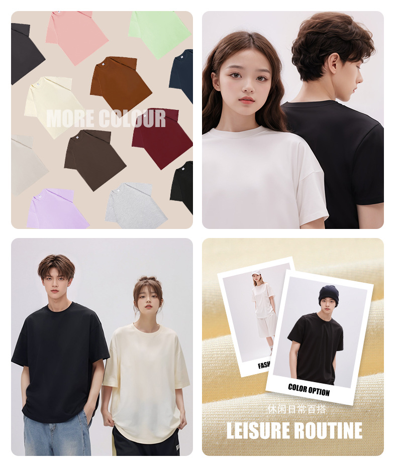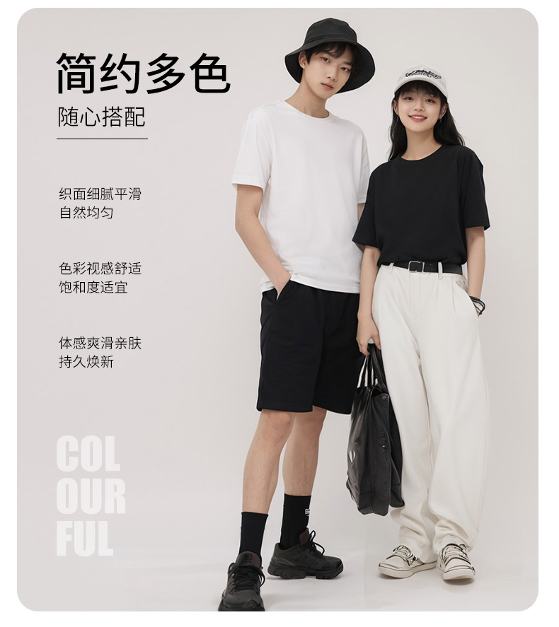 국가 동향 남성 티셔츠 230g 무거운 반팔 남성 및 여성 순수 코튼 티셔츠 느슨한 라운드 넥 그룹 유니폼 바닥 셔츠 의류 유행스토어 가기