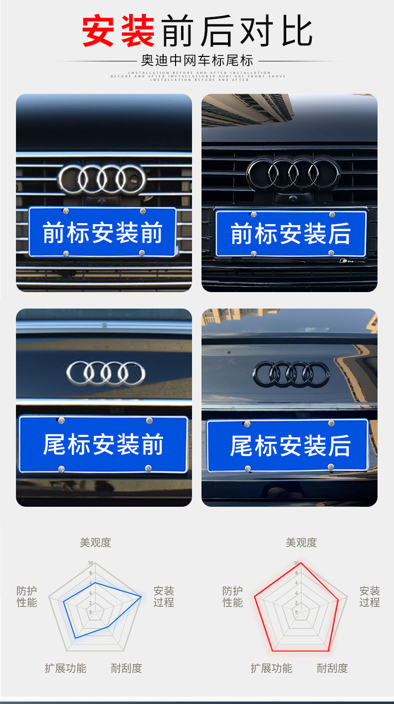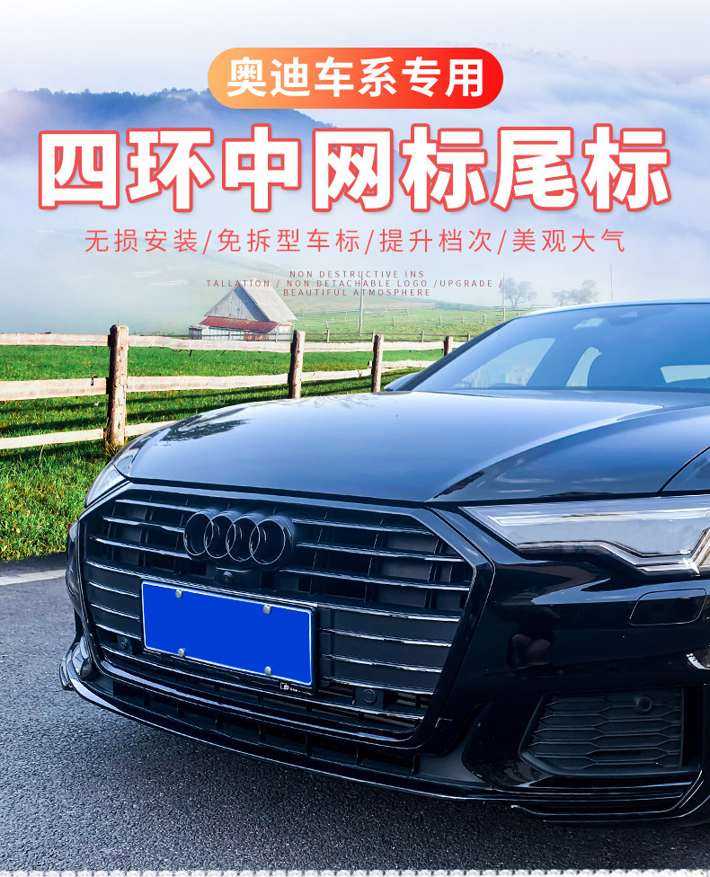 아우디 A6L 미들 네트 4th 링 카 로고 A3S4 수정 A5LQ5LQ7 스포츠 리어 커버 라벨 검게에 적용 가능스토어 가기