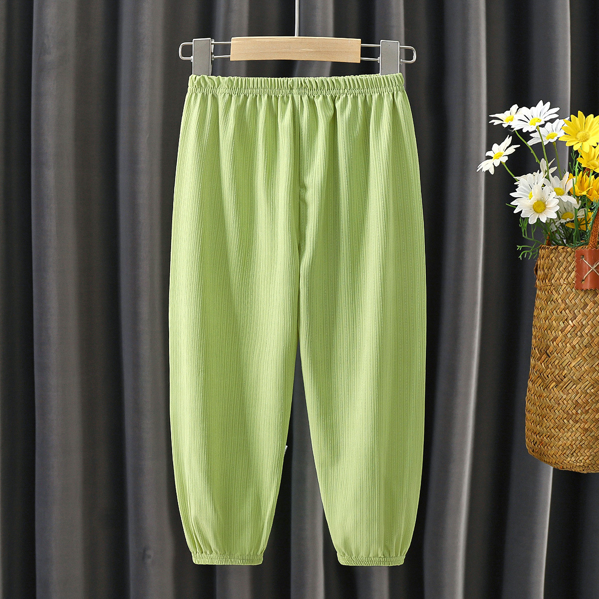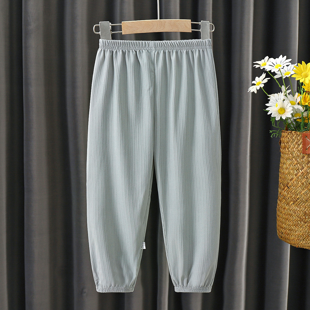 여름 신제품 어린이 모기 방지 바지 남성과 여성의 심플 씬 블루머 통기성 아이스 실크 캐주얼 롱 팬츠