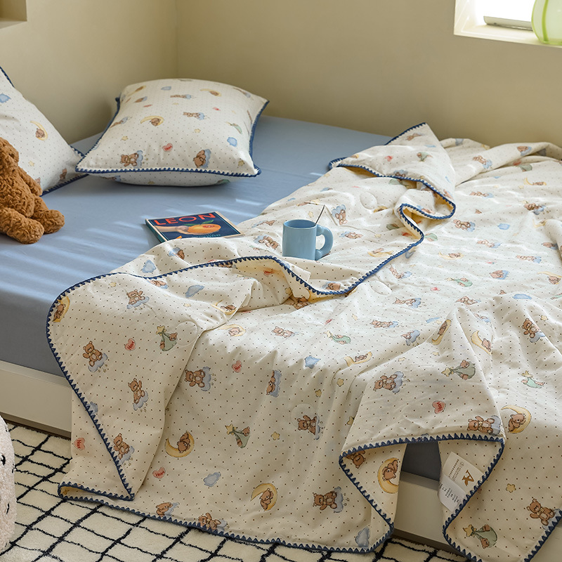 클래스 A 면 어린이 여름 이불 콩 얇은 이불 유치원 에어컨 이불 순면 더블 레이어 원사 여름 이불 4 피스 세트스토어 가기