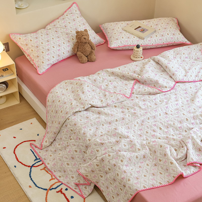 클래스 A 면 어린이 여름 이불 콩 얇은 이불 유치원 에어컨 이불 순면 더블 레이어 원사 여름 이불 4 피스 세트