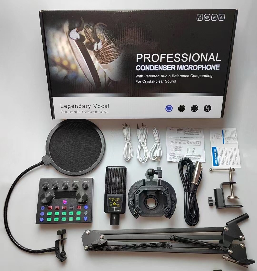 커패시터 마이크 LGT240 라이브 녹음 사운드 카드 휴대 전화 컴퓨터 노래하는 마이크 유선 마이크를 넣습니다.