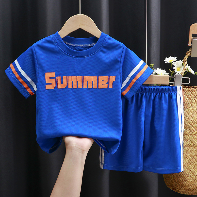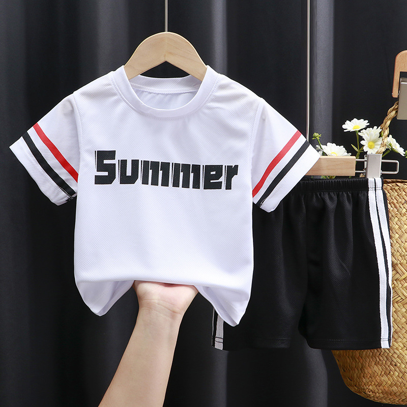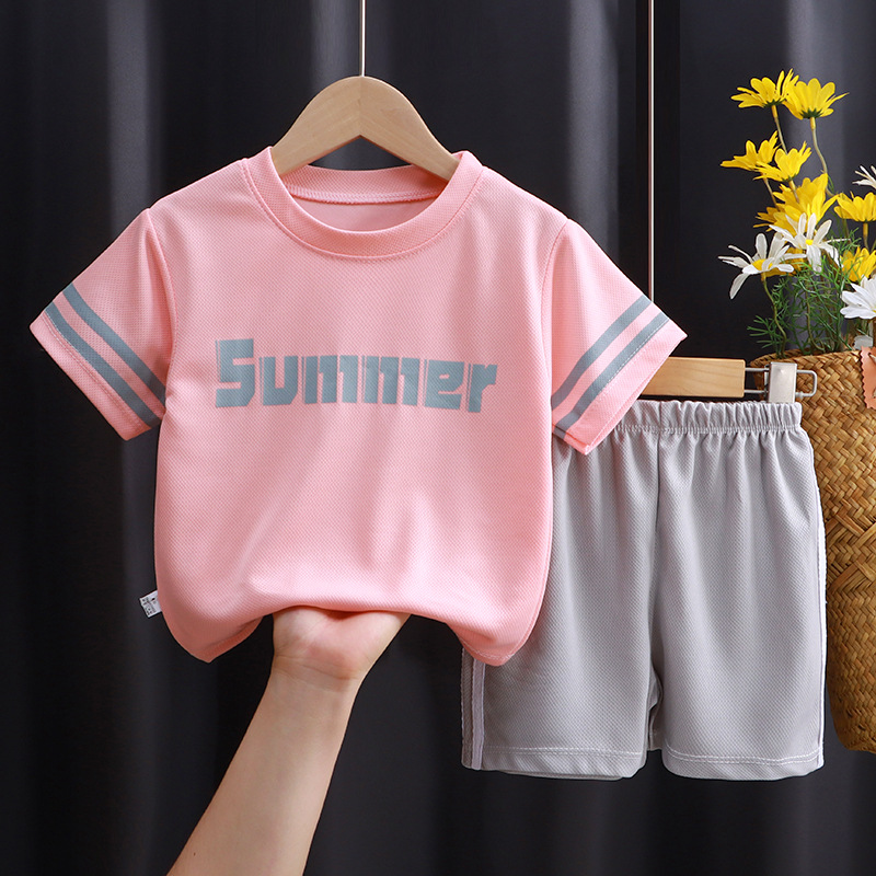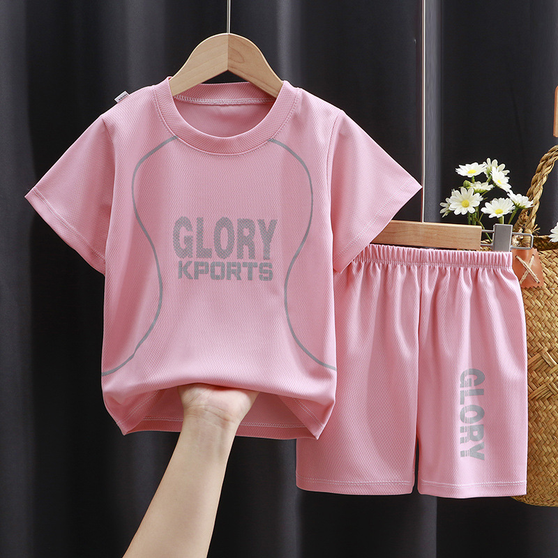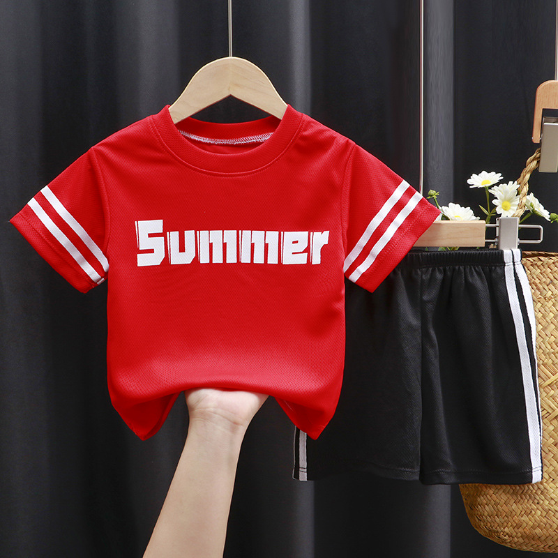 어린이 반팔 세트 러닝 스포츠웨어 캐주얼 속건 의류 소년 소녀 여름 새 티셔츠 반바지 투피스 세트