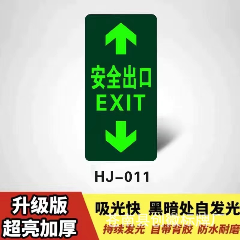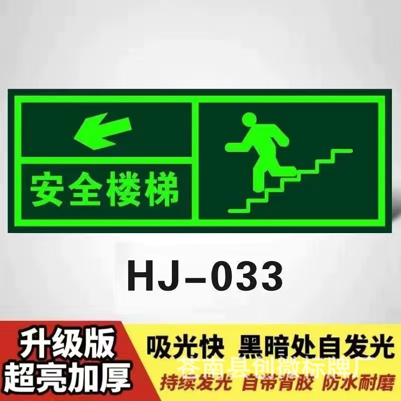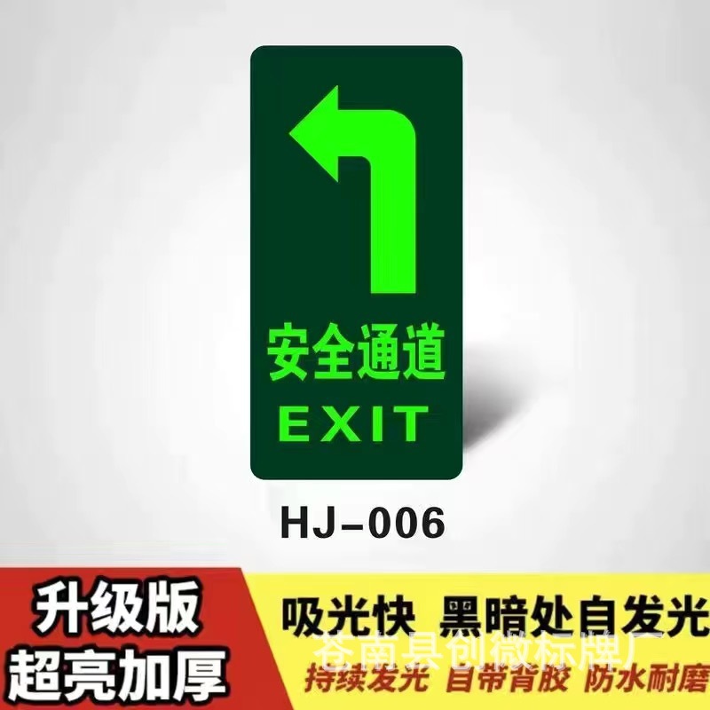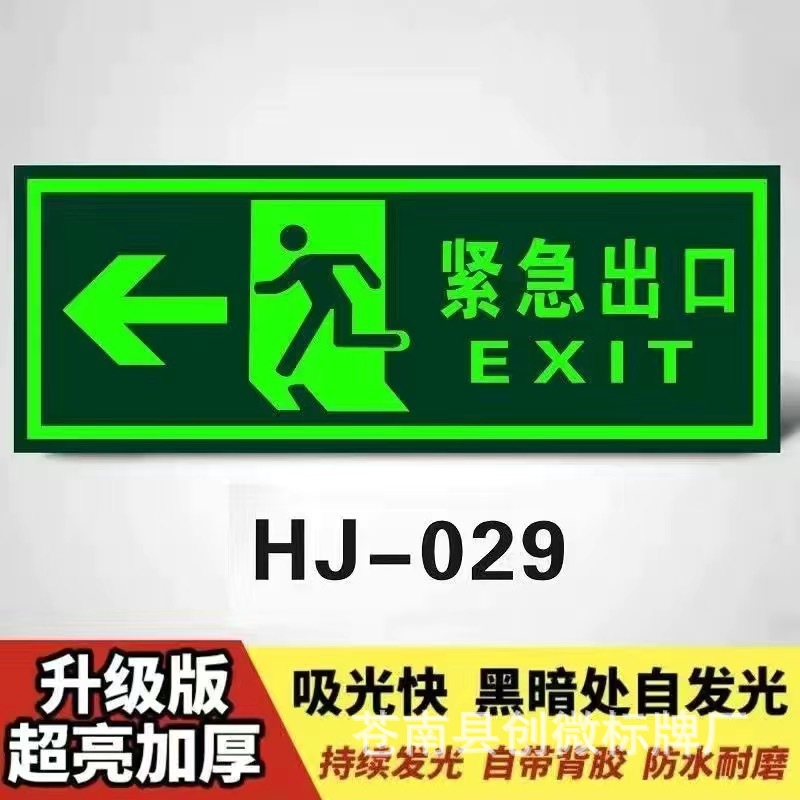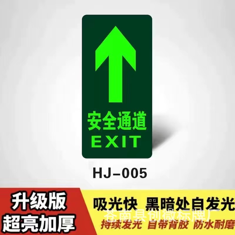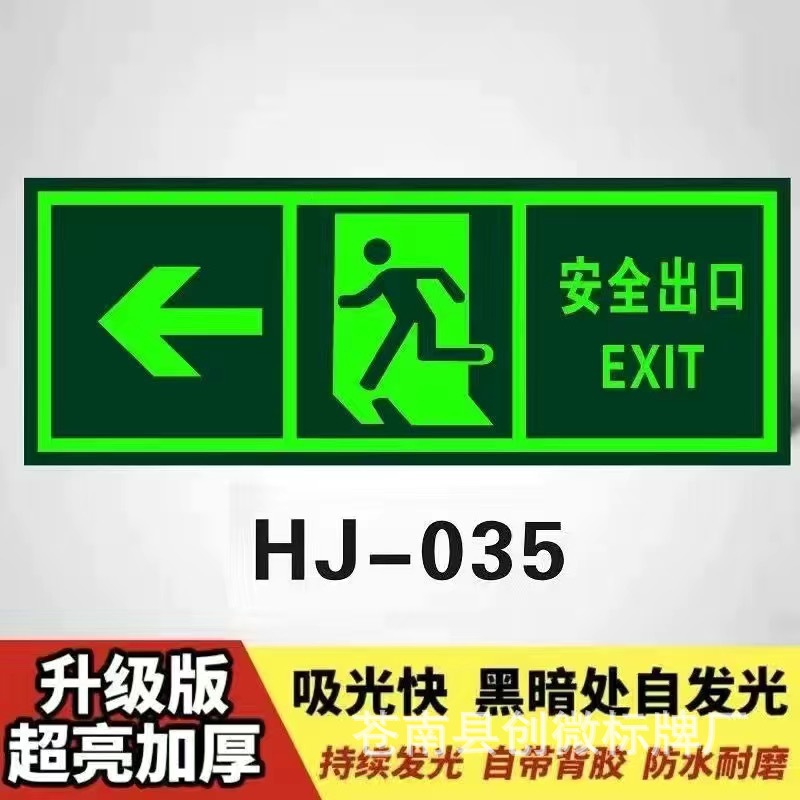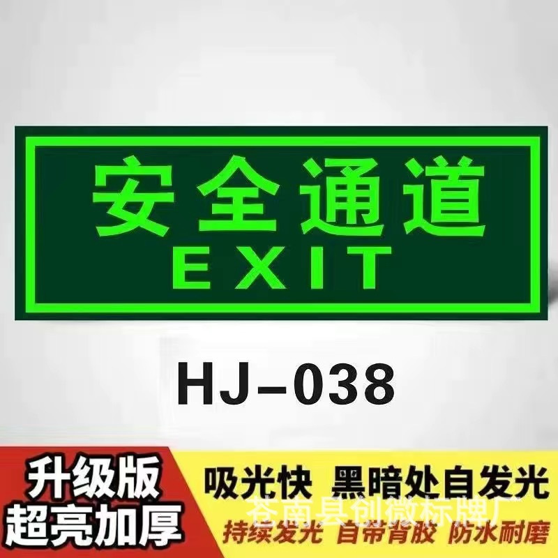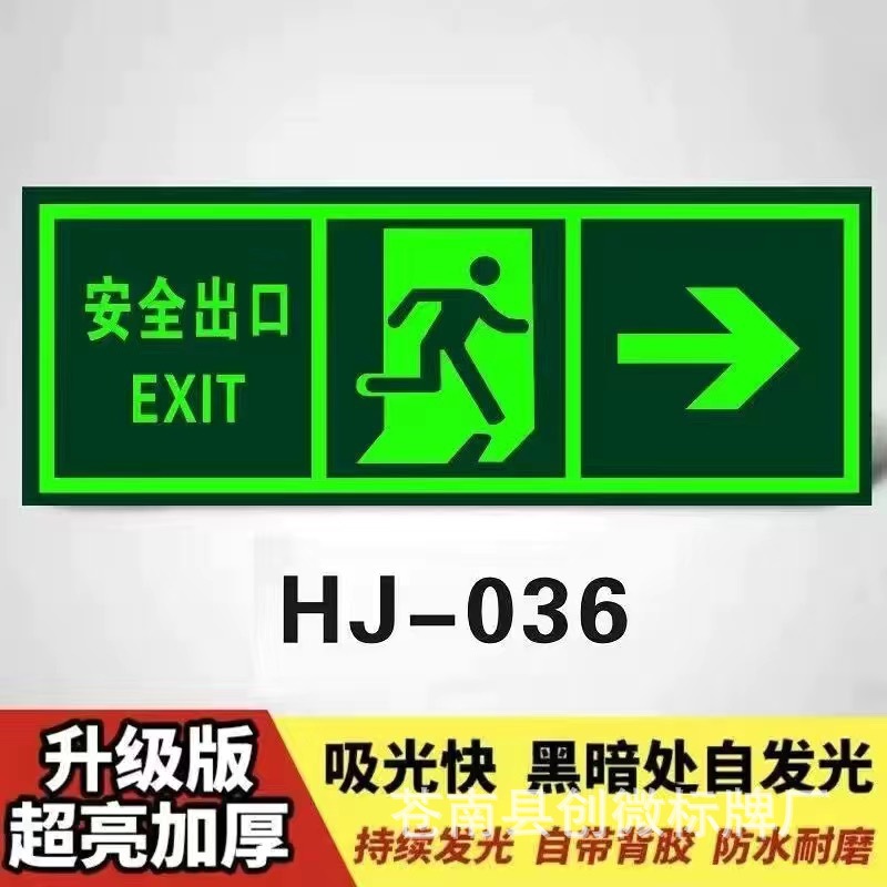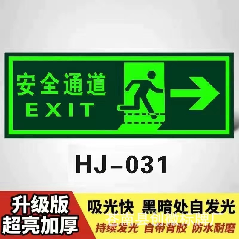 안전 출구에 빛나는 표지판, 화재 비상 대피 통로 표지판, pvc 자체 발광 표지판, 스티커스토어 가기