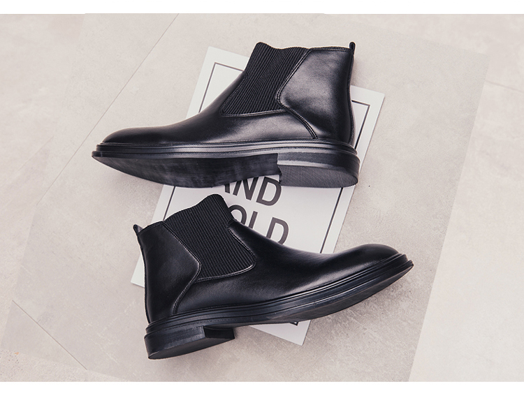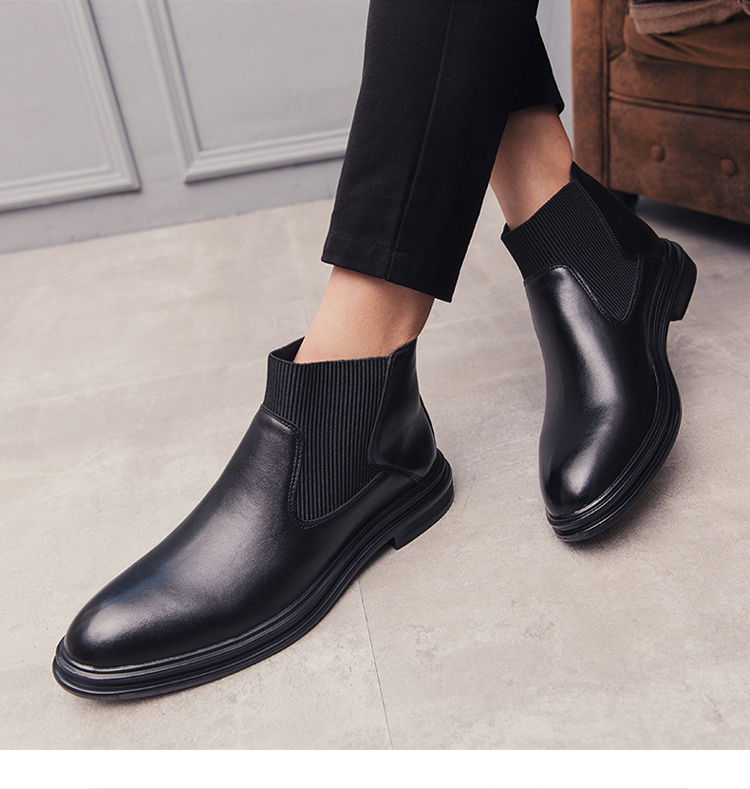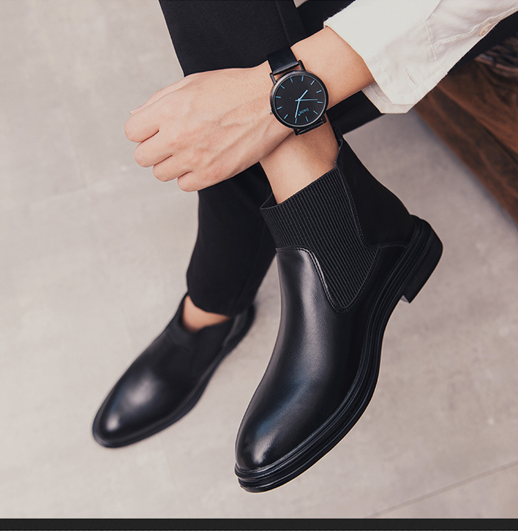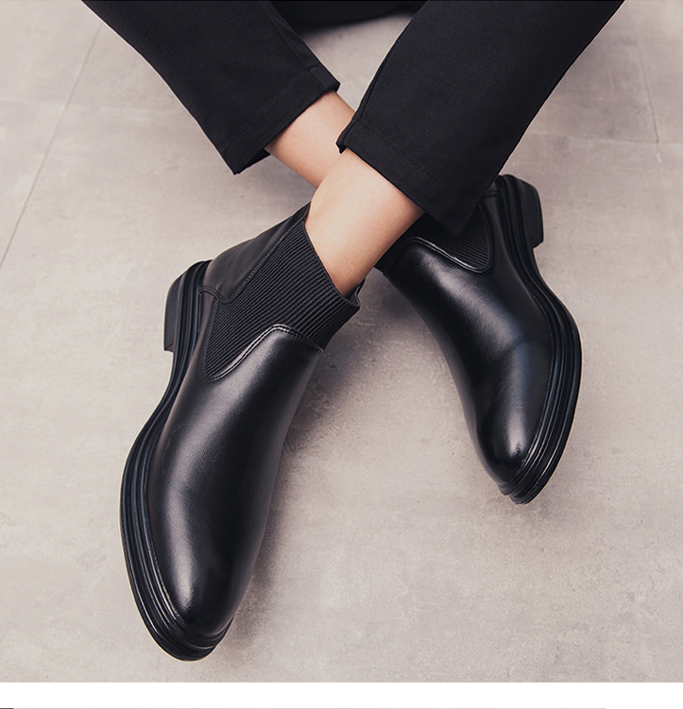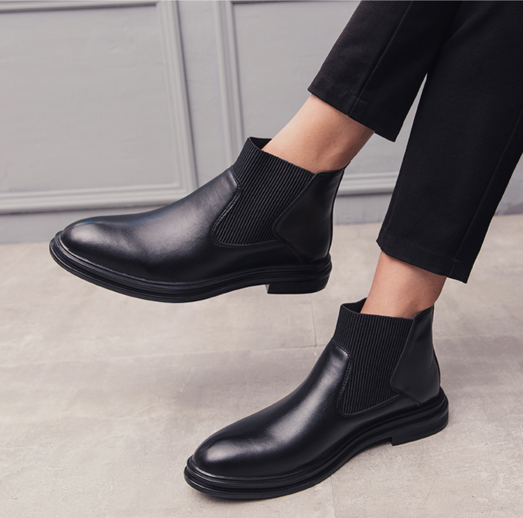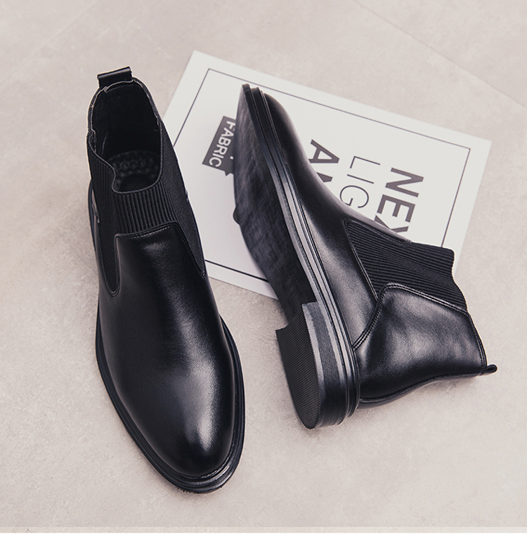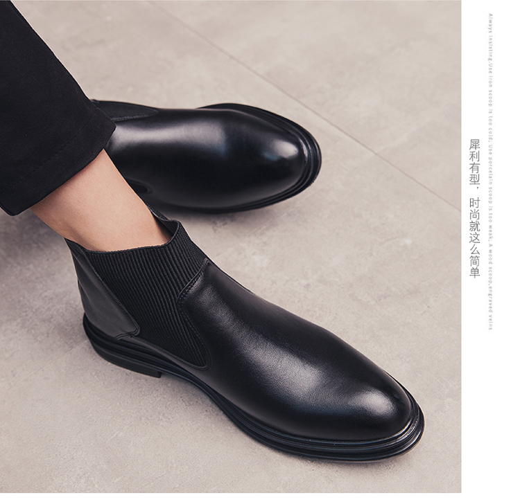 가을과 겨울 남자의 유럽과 미국 첼시 부츠 유행 기모 면 신발 뾰족한 발가락 영국 하이 탑 한국 스타일 마틴 앵클 부츠
