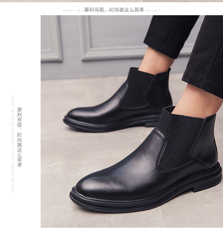 秋冬男士中邦欧美切尔西靴潮流加绒棉鞋尖头英伦高帮韩版马丁短靴