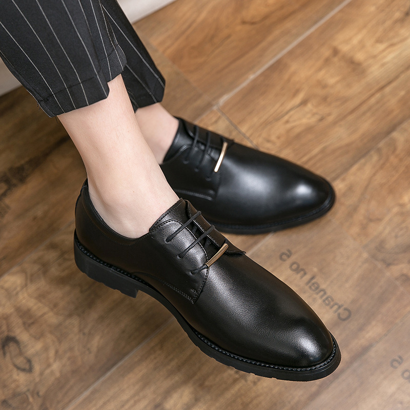 冬季小皮鞋男士软皮韩版英伦商务真皮正装尖头休闲潮流发型师男鞋
