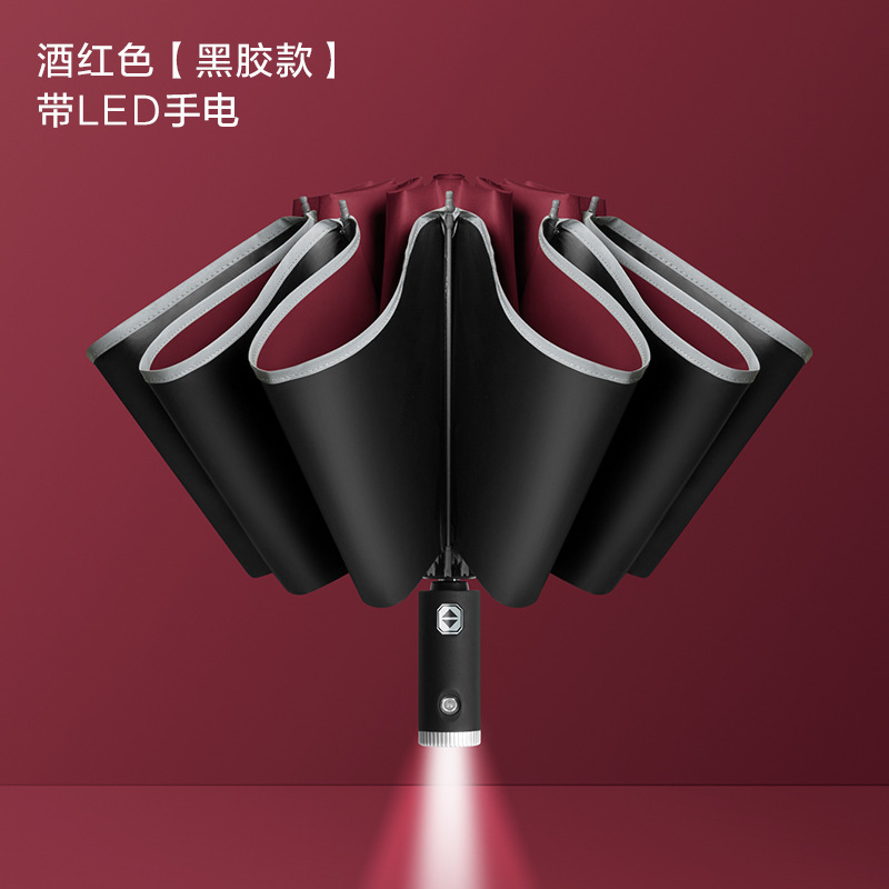 • LED 회전 우산 손잡이-10 뼈 버건디