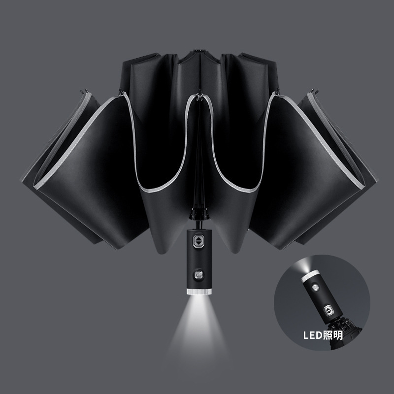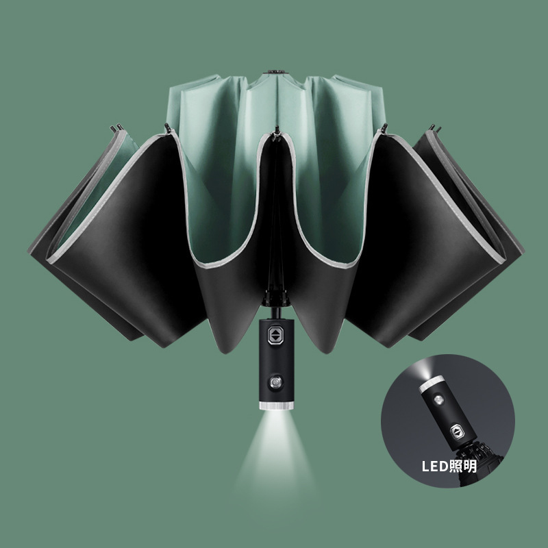 자동 우산 자동차 역 태양 보호 차양 태양 우산 맑고 비 LED 손전등과 이중 사용 비즈니스 우산스토어 가기
