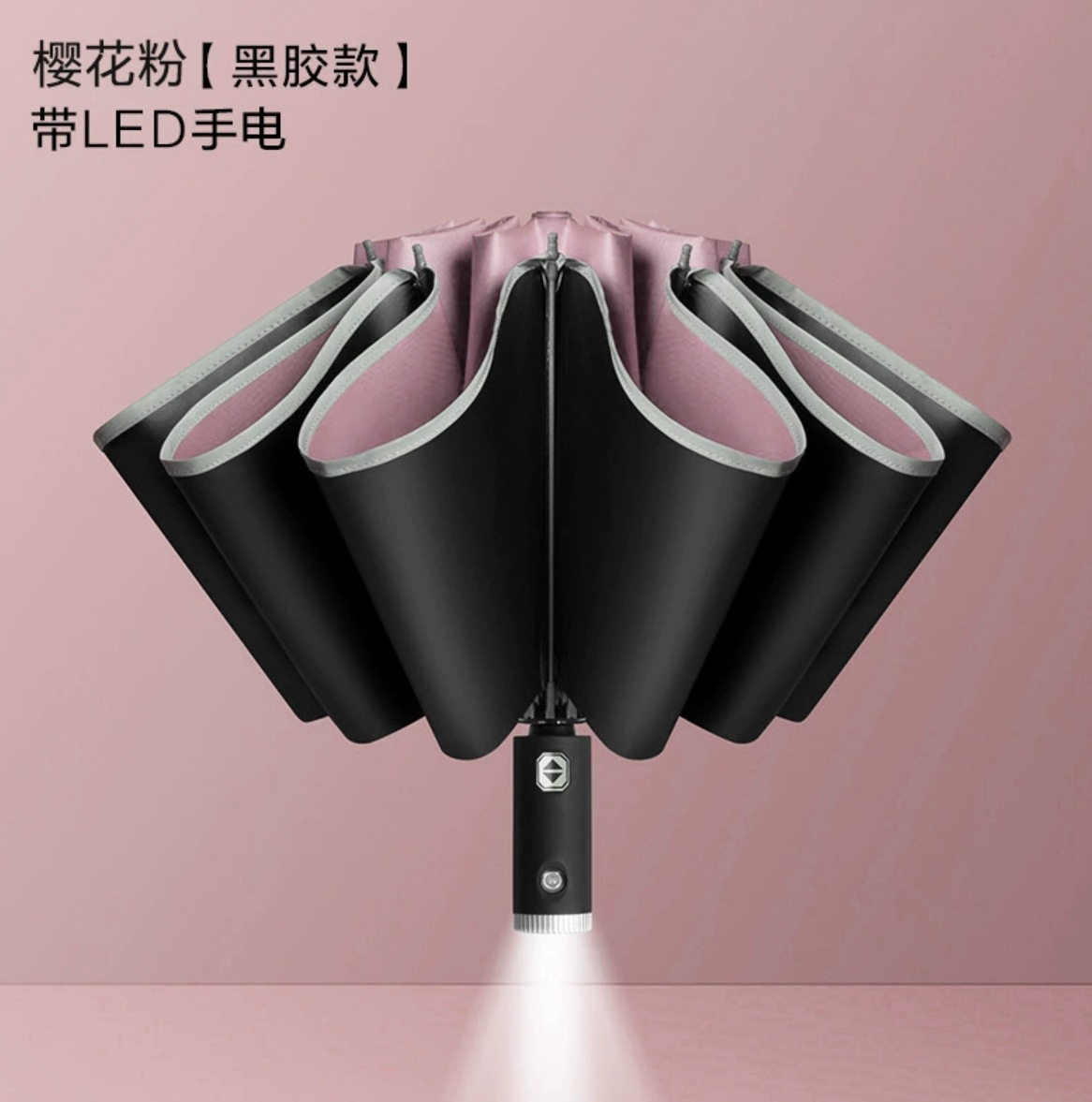• LED 회전 우산 손잡이-10 뼈 핑크 레드