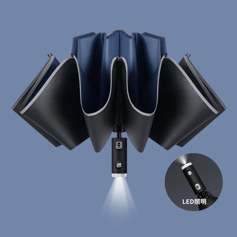 • LED 회전 우산 손잡이-10 뼈 네이비