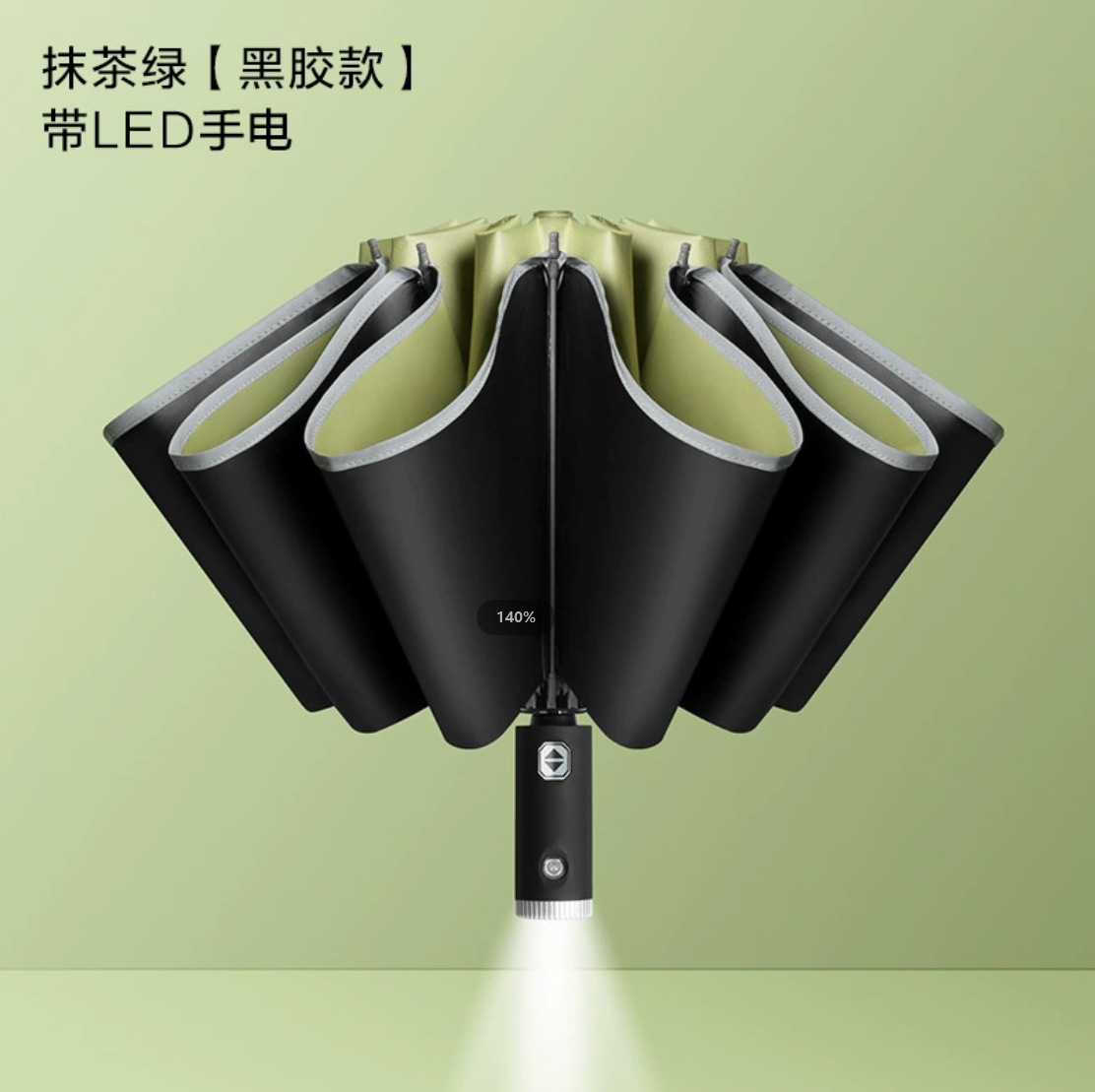 • LED 회전 우산 손잡이-10 뼈 말차 그린