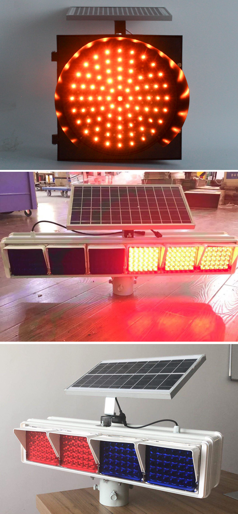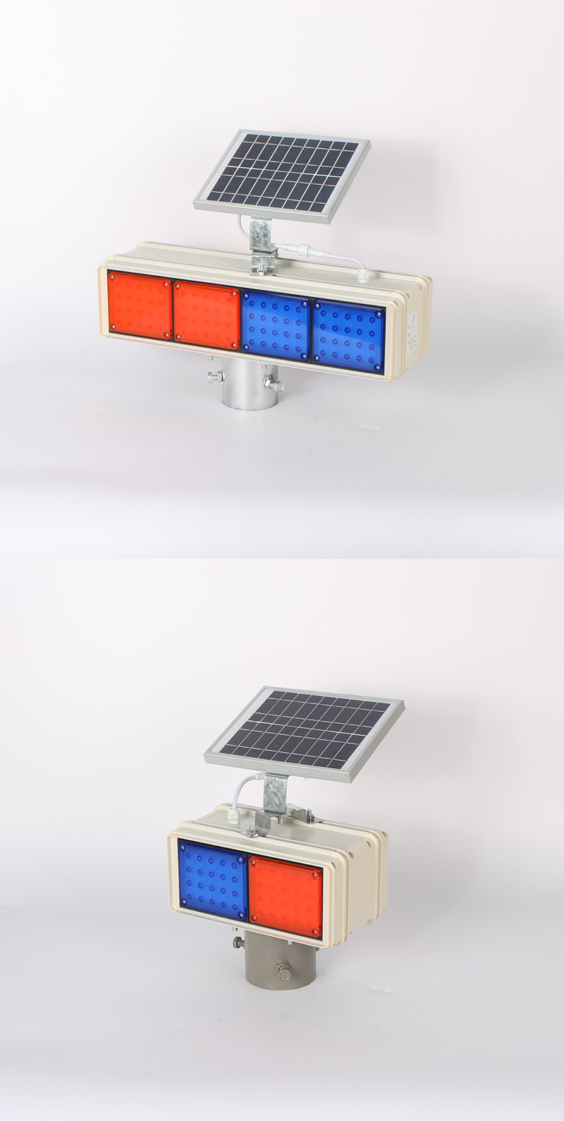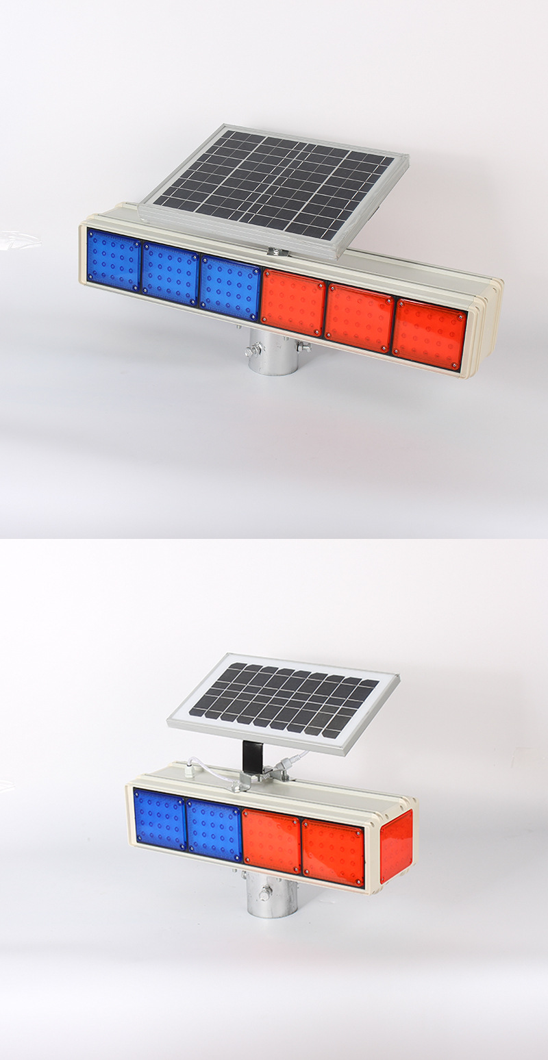 태양광 점멸등 도로 공사 LED 조명 빨강 및 파랑 4 등 양면 경광등 신호등 교통 점멸등