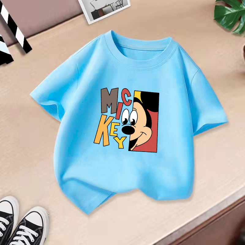 어린이 유행 티셔츠 소년 소녀 반팔 여름 새로운 서양 스타일 어린이 아기 만화 인쇄 한국 아동복스토어 가기