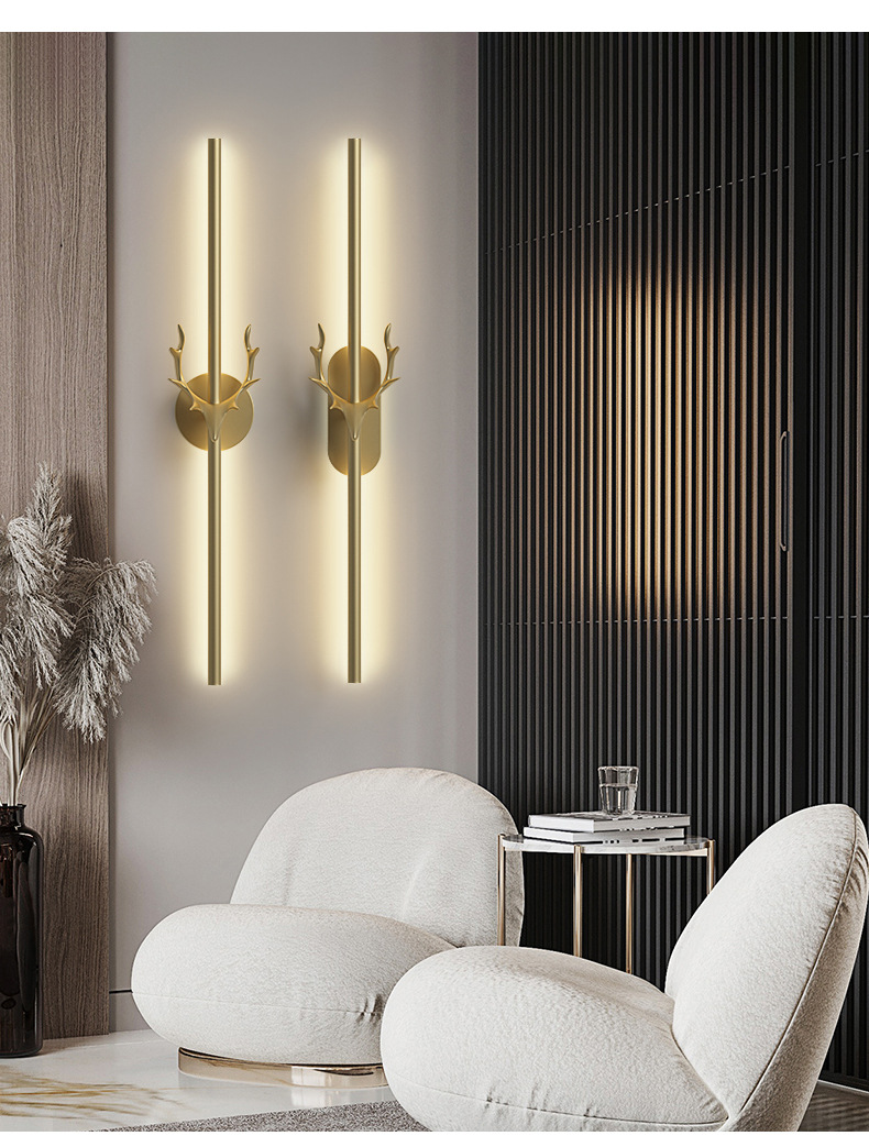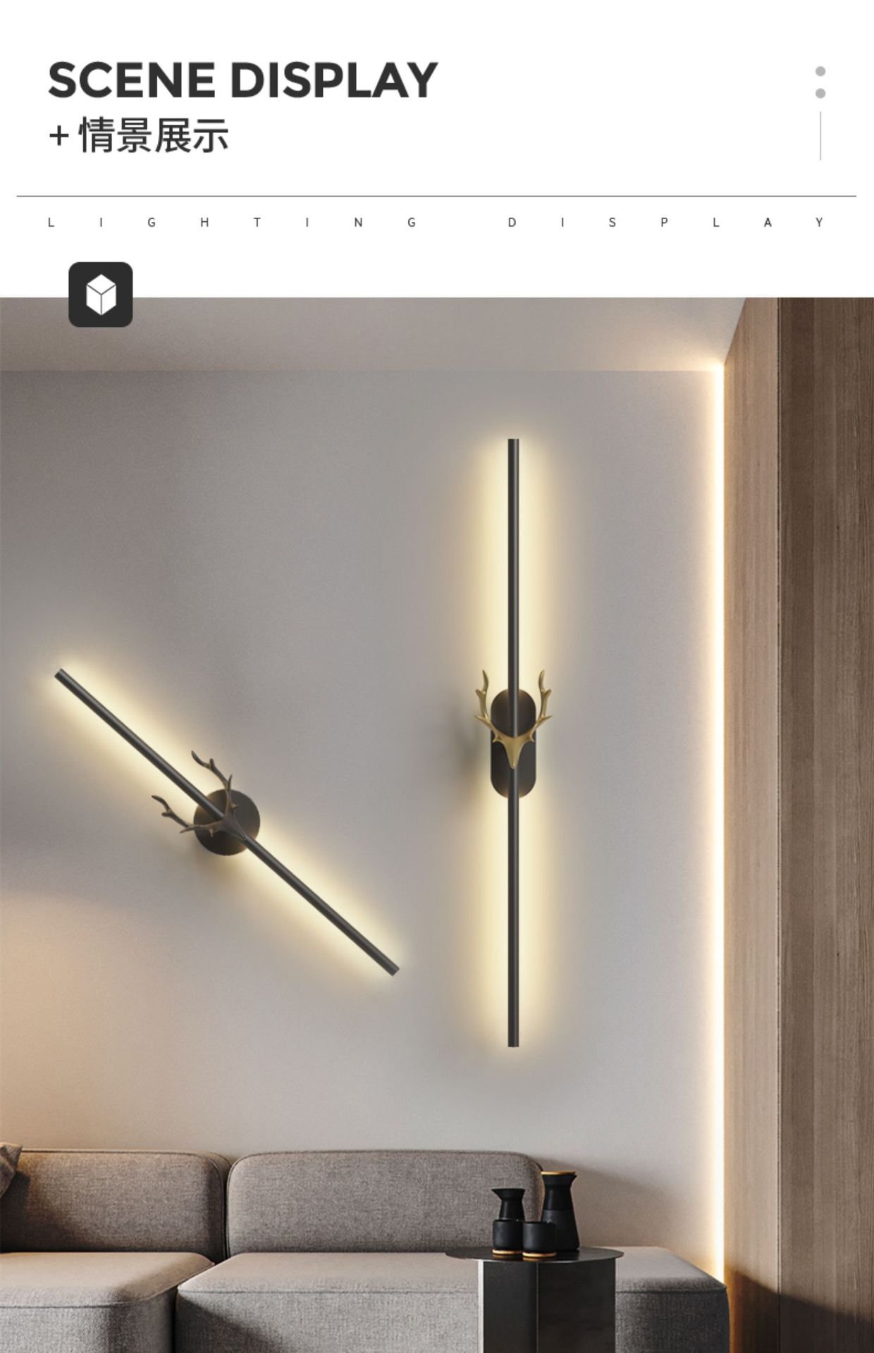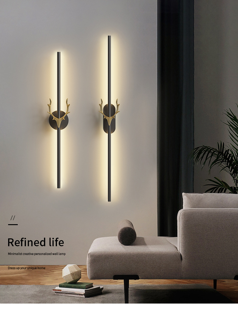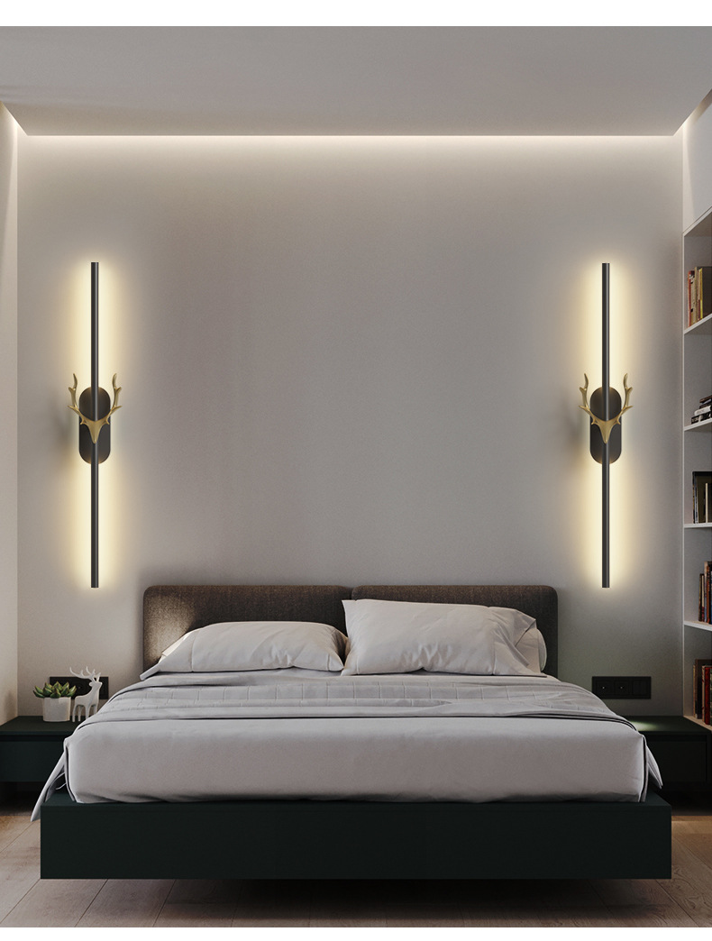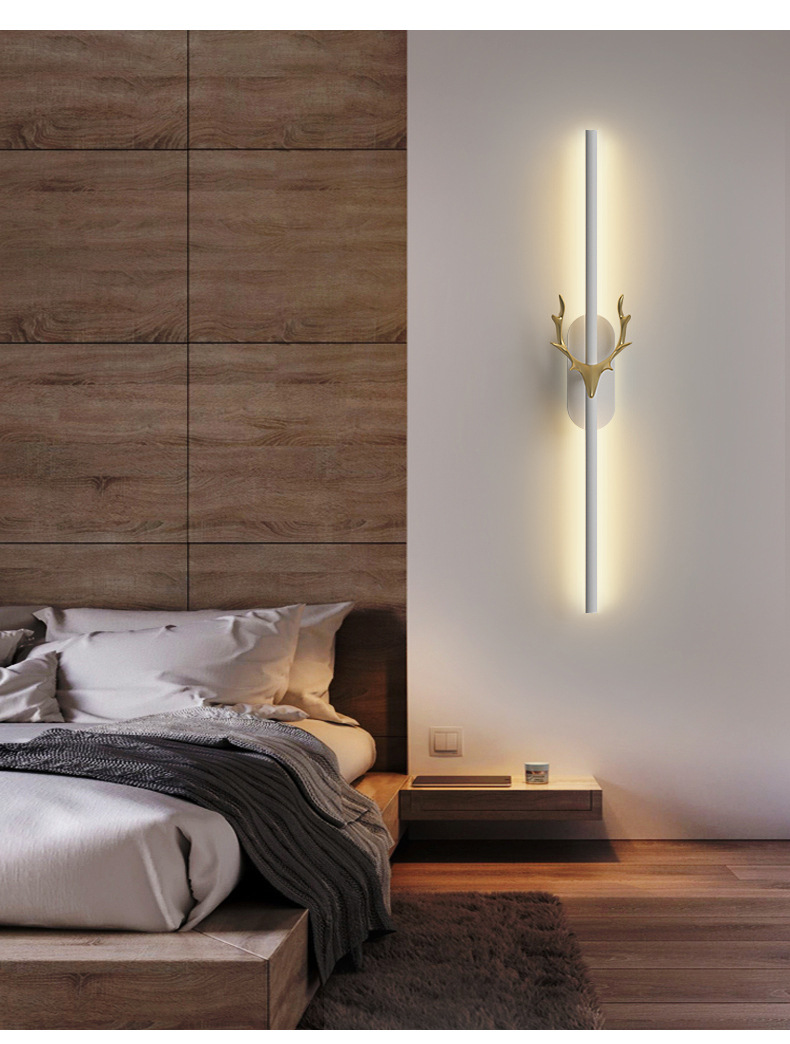 간단한 현대 긴 벽 램프 창조적 인 뿔 소파 연구 침실 침대 옆 TV 배경 벽 인터넷 연예인 램프스토어 가기