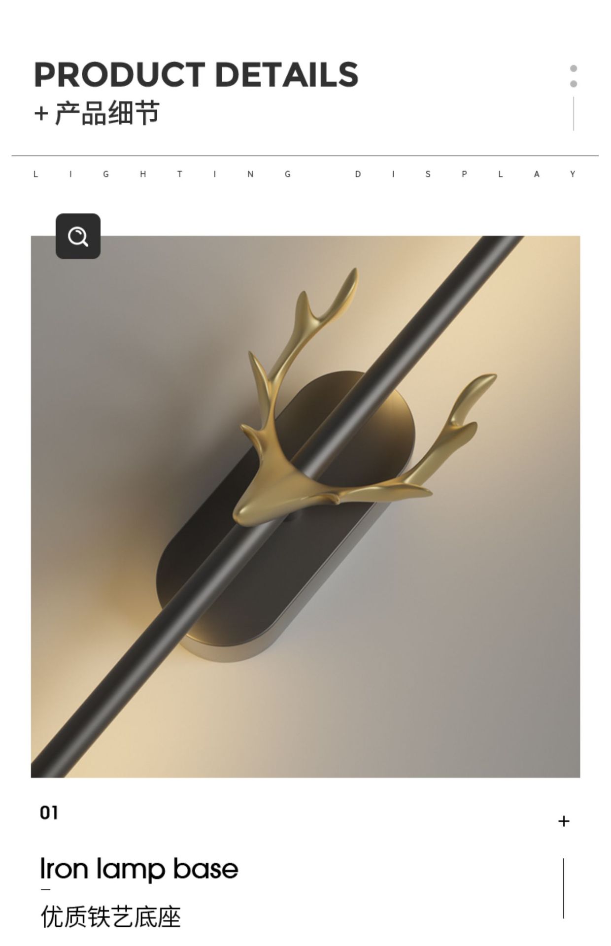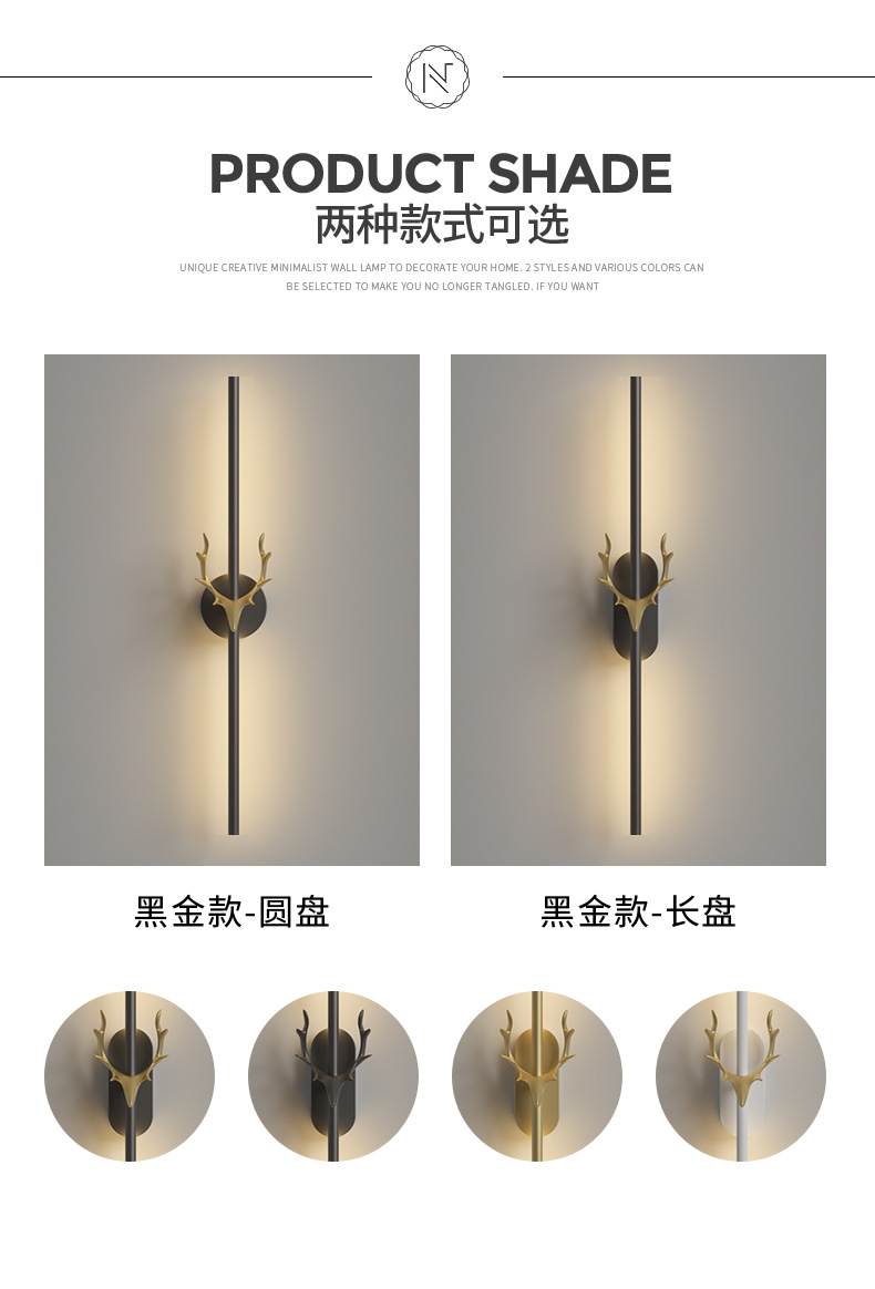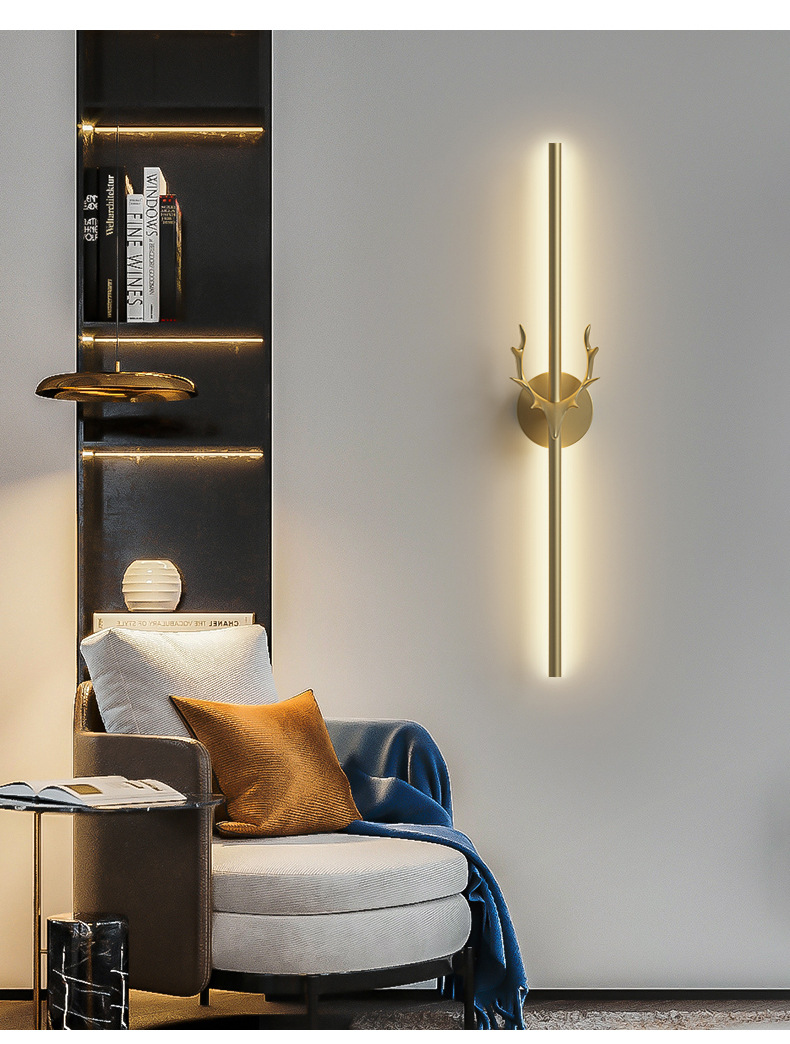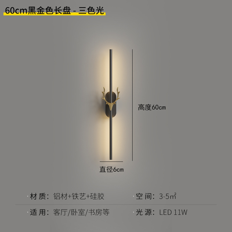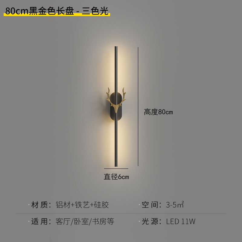 간단한 현대 긴 벽 램프 창조적 인 뿔 소파 연구 침실 침대 옆 TV 배경 벽 인터넷 연예인 램프스토어 가기