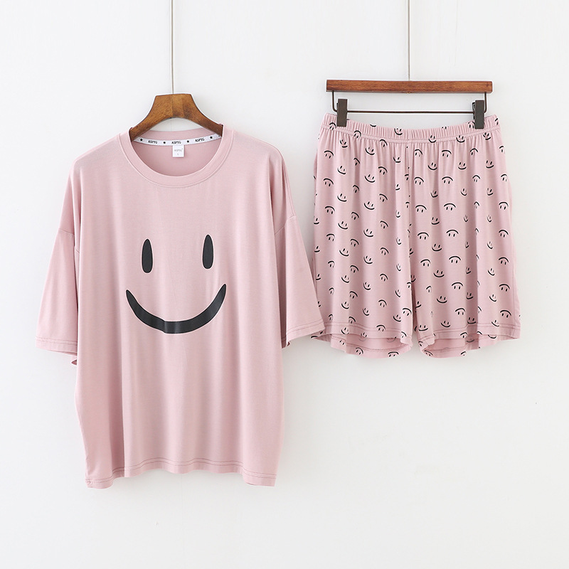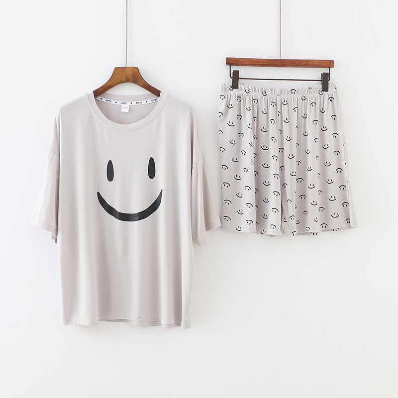 스마일 잠옷 여자의 여름 모달 반팔 한국 스타일 귀여운 반바지 얇은 느슨한 겉옷 가정 옷 세트