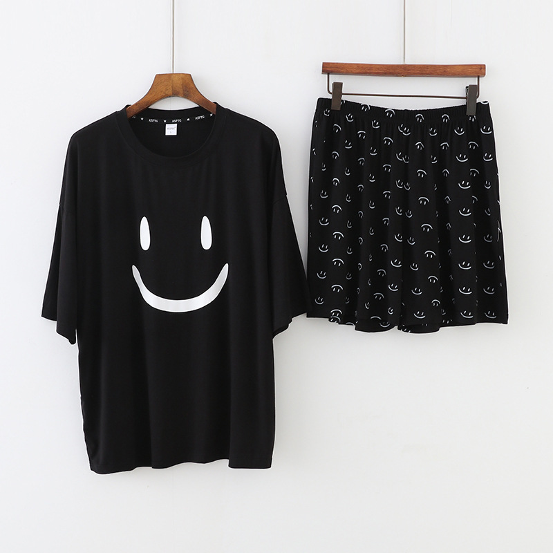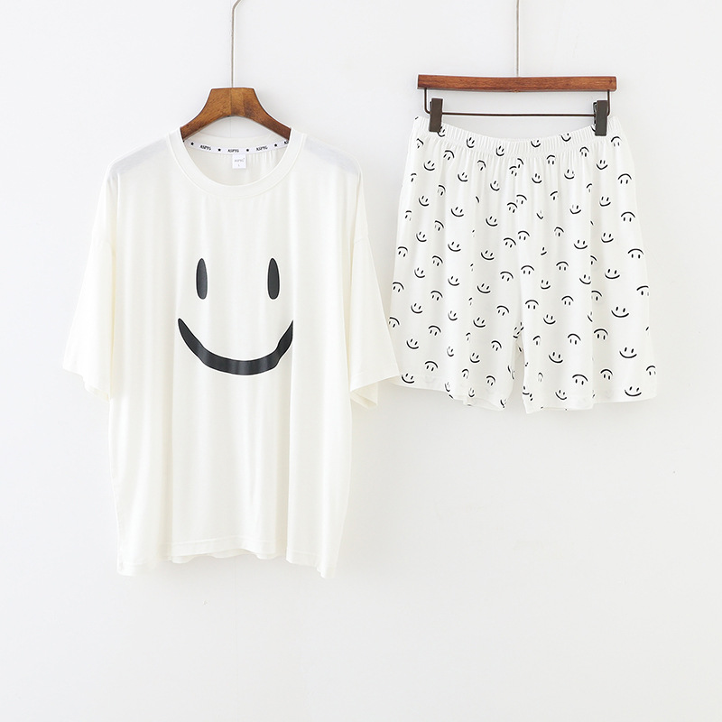 스마일 잠옷 여자의 여름 모달 반팔 한국 스타일 귀여운 반바지 얇은 느슨한 겉옷 가정 옷 세트스토어 가기