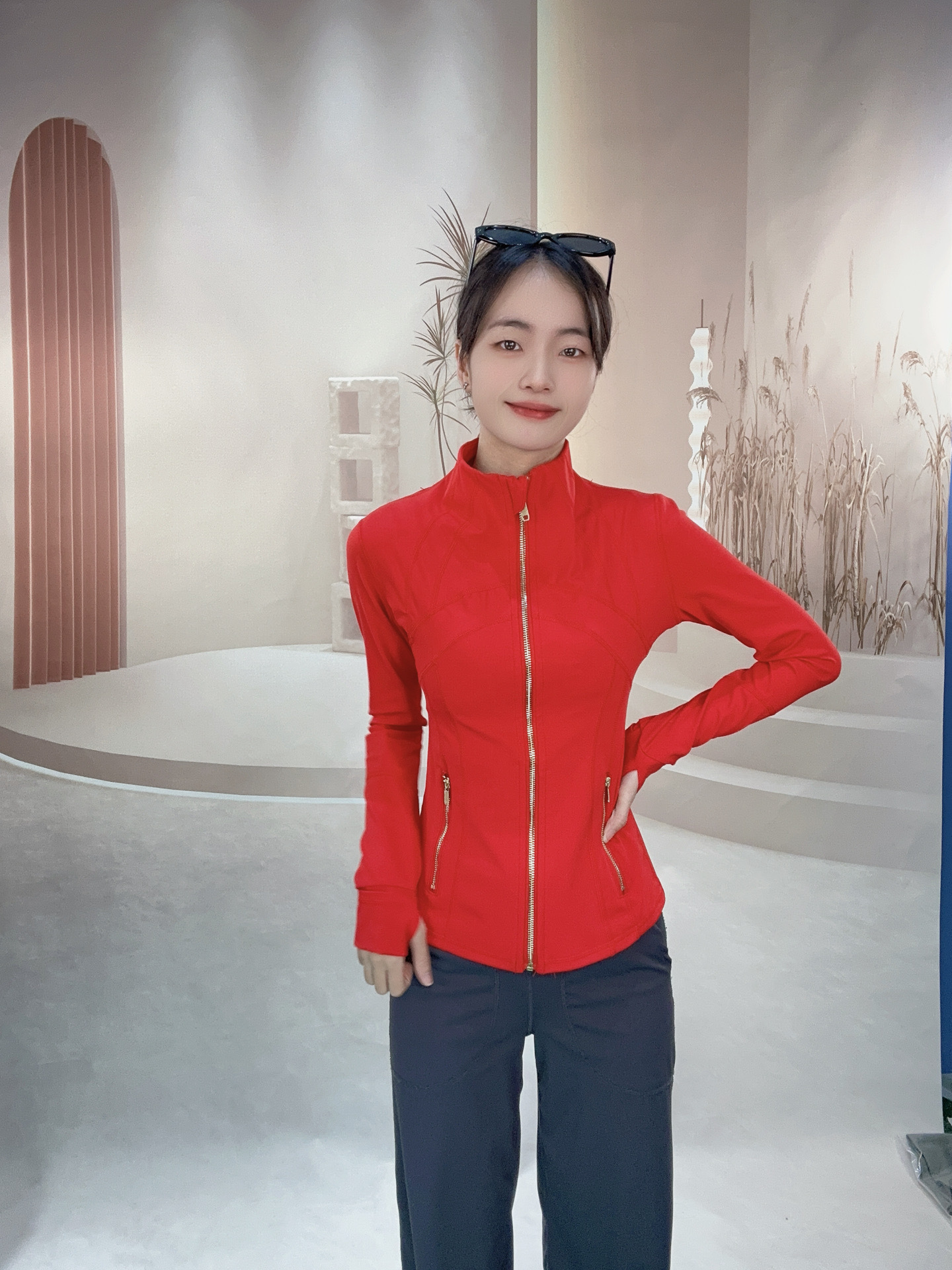 • 레드 스탠드 칼라 재킷