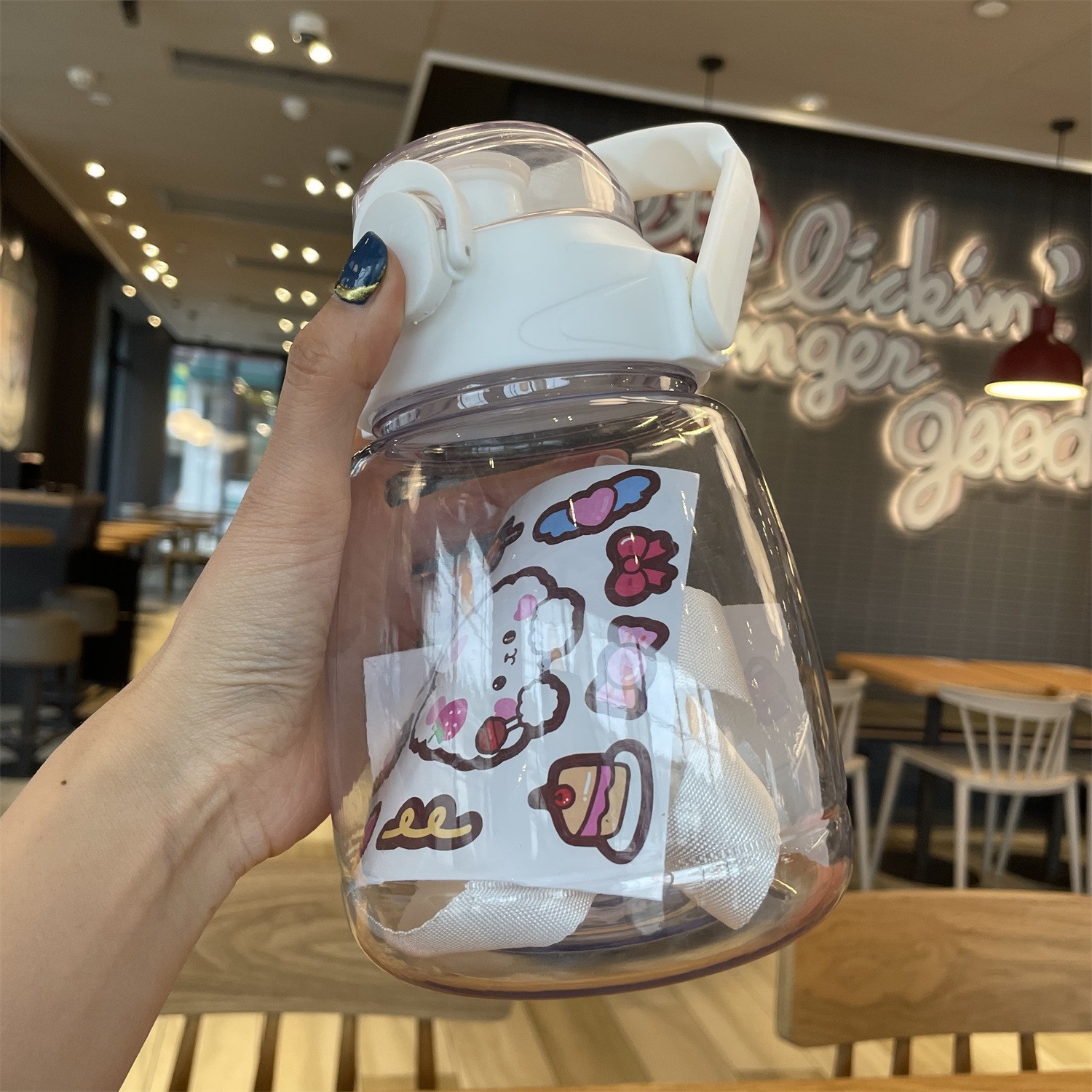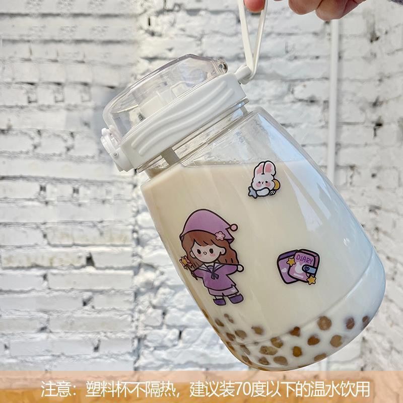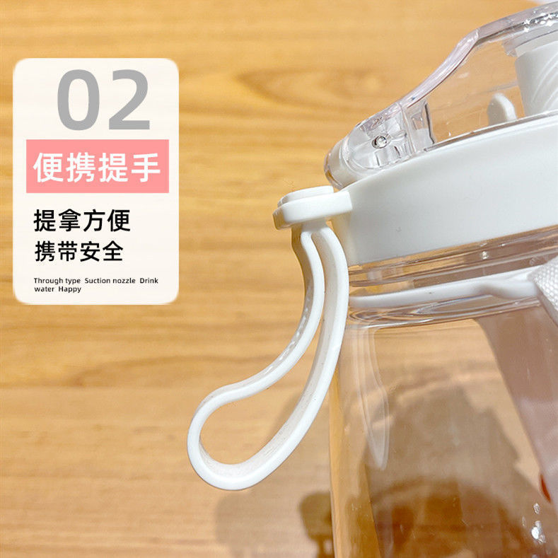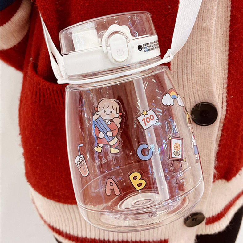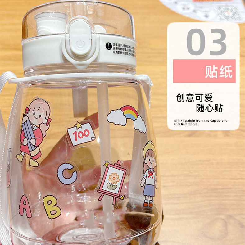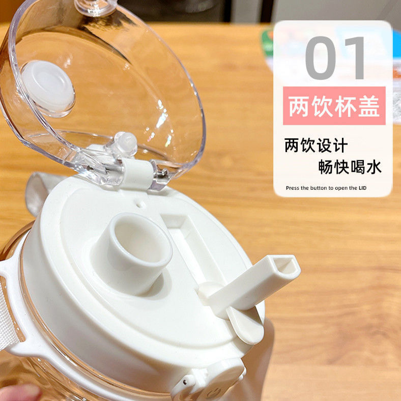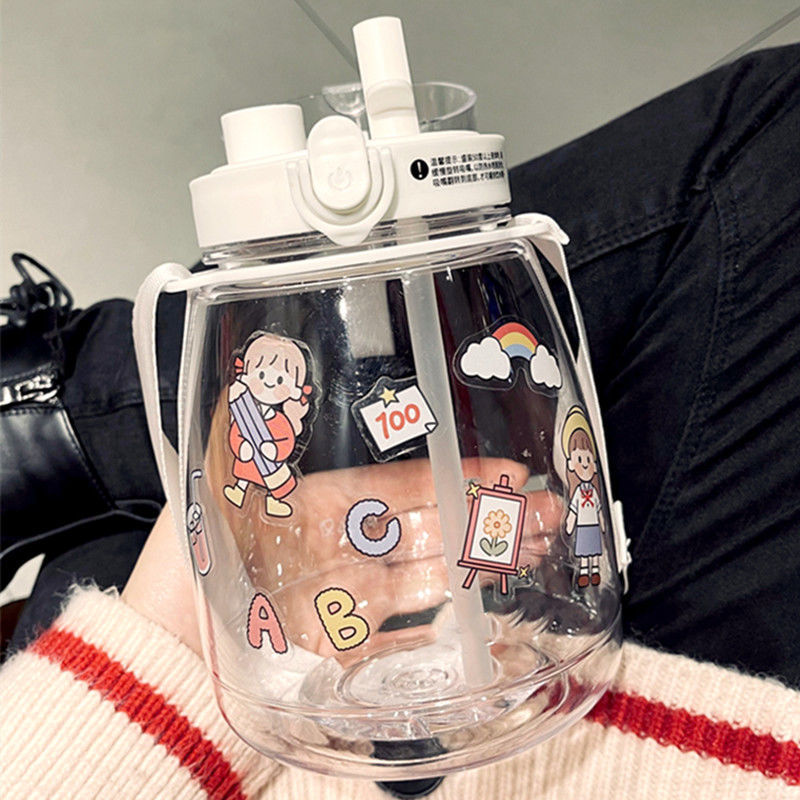 귀여운 디자인의 대용량 플라스틱 컵, 학생용 이중 음용 빨대 물병, 어린이용 휴대용 물통 선물