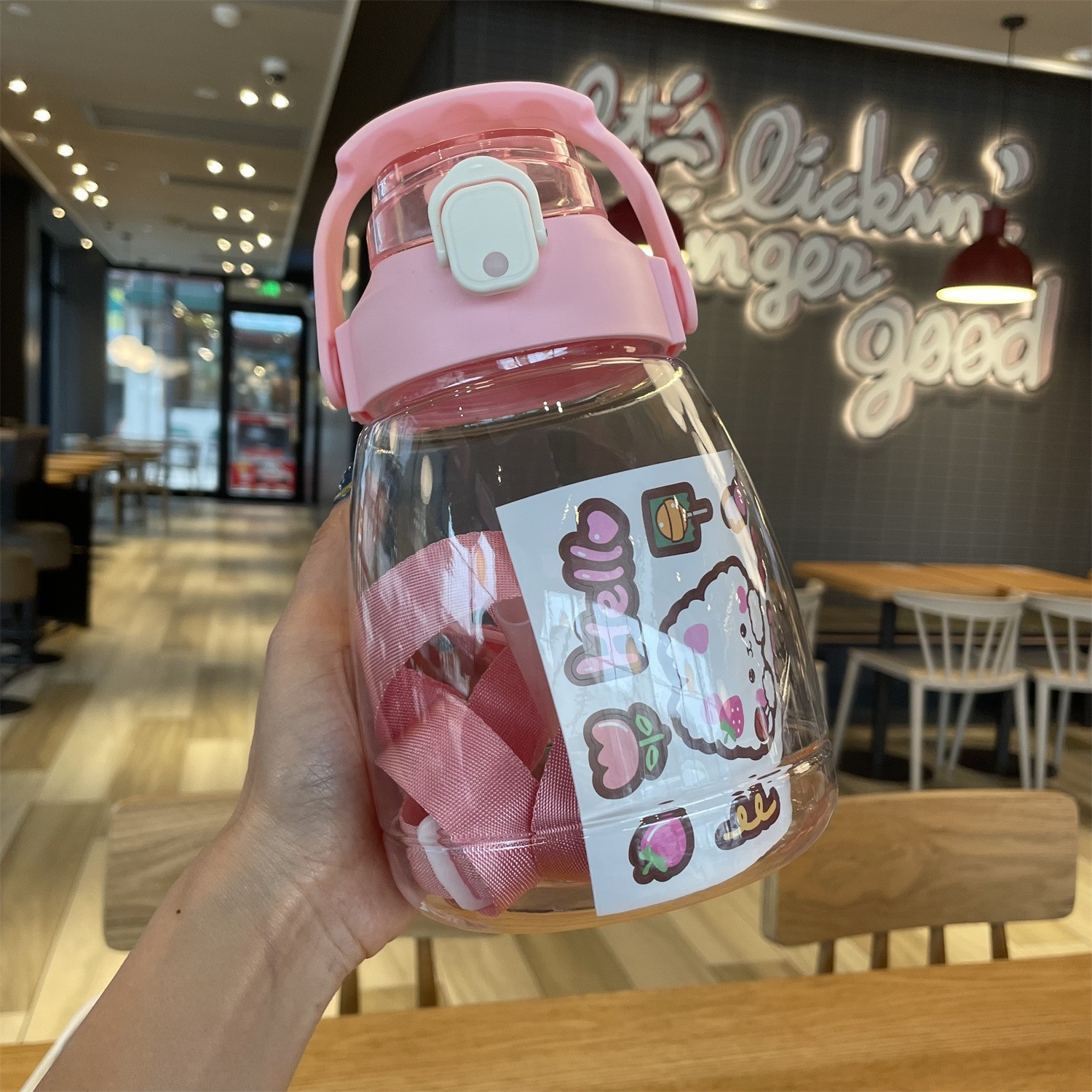 귀여운 디자인의 대용량 플라스틱 컵, 학생용 이중 음용 빨대 물병, 어린이용 휴대용 물통 선물스토어 가기