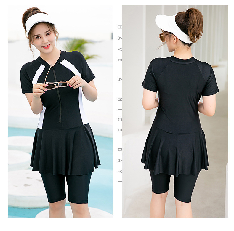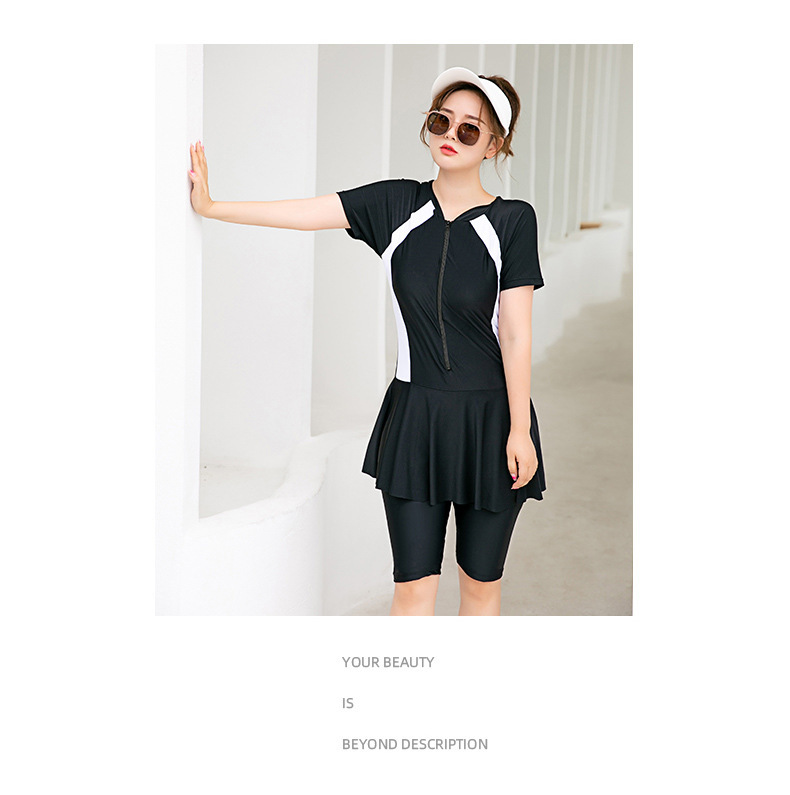 스커트 스타일 보수적 인 원피스 수영복 여성용 슬림 배꼽 덮개 스포츠 비치 온천 슬림 핏 플러스 사이즈 반팔 통통 mm200스토어 가기