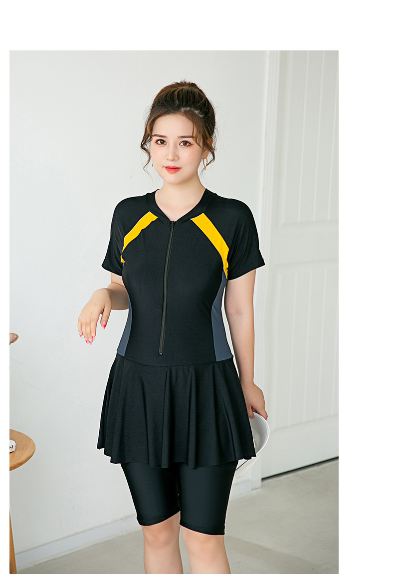 裙式保守连体泳衣女显瘦遮肚运动沙滩温泉修身大码短袖微胖mm200