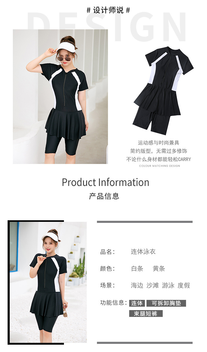 스커트 스타일 보수적 인 원피스 수영복 여성용 슬림 배꼽 덮개 스포츠 비치 온천 슬림 핏 플러스 사이즈 반팔 통통 mm200