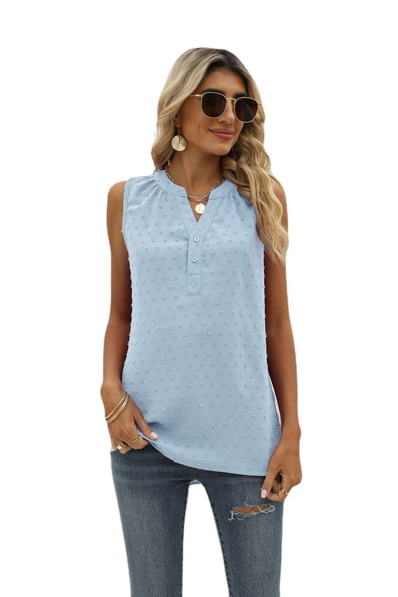 크로스 보더 유럽과 미국 여성 의류 아마존 여름 새로운 단색 쉬폰 셔츠 느슨한 V-넥 자카드 민소매 캐주얼 조끼스토어 가기