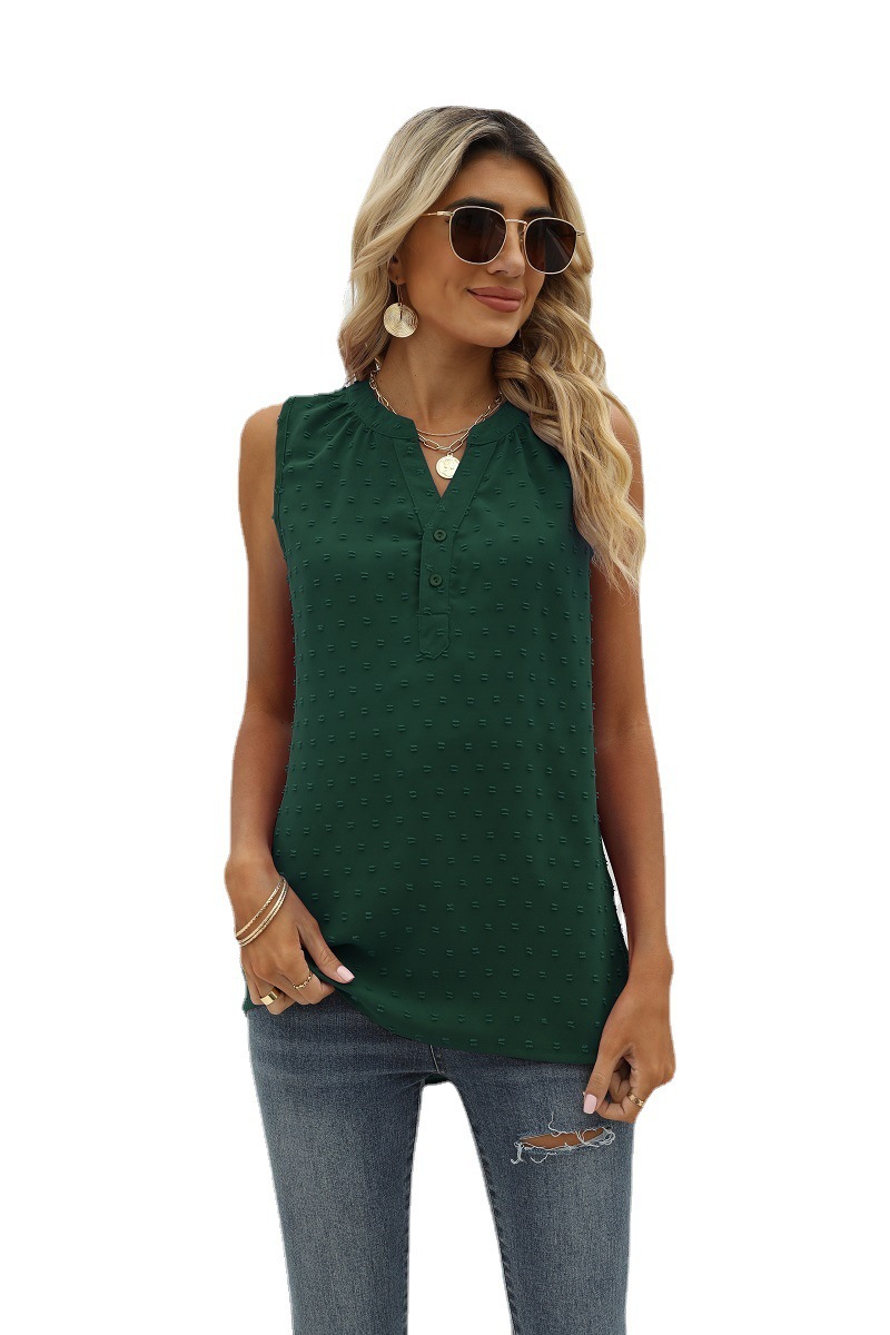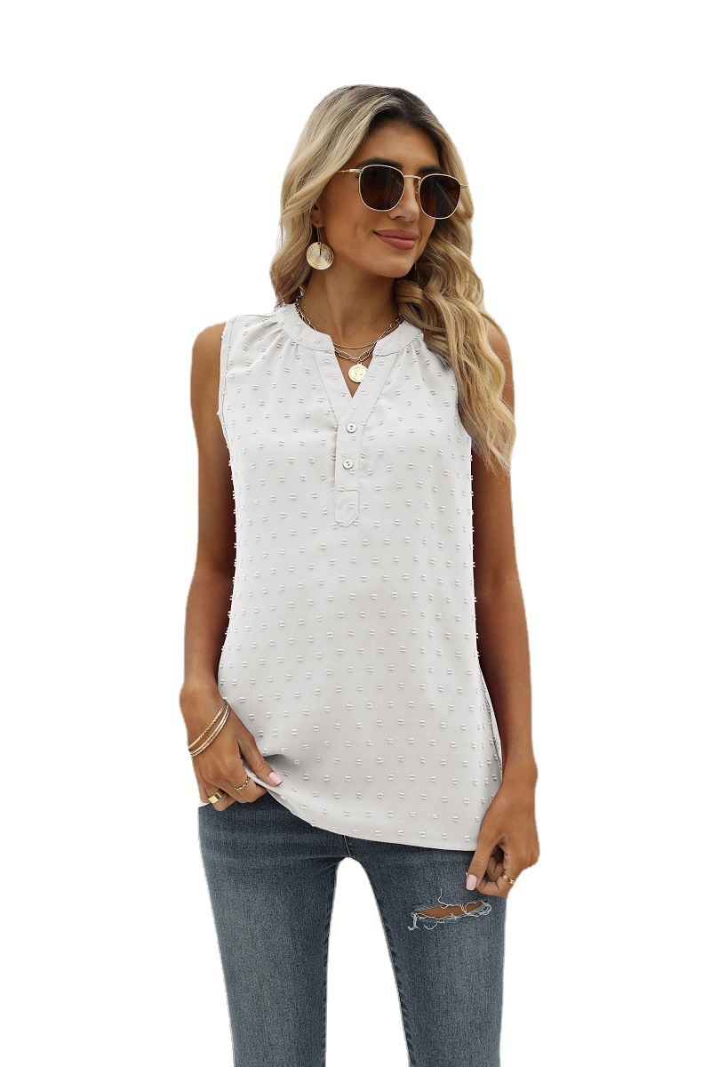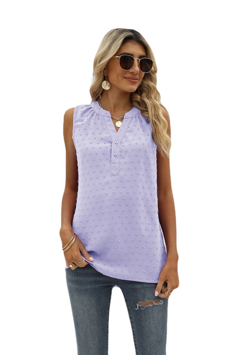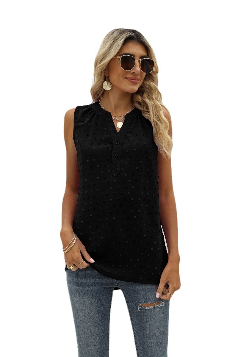크로스 보더 유럽과 미국 여성 의류 아마존 여름 새로운 단색 쉬폰 셔츠 느슨한 V-넥 자카드 민소매 캐주얼 조끼
